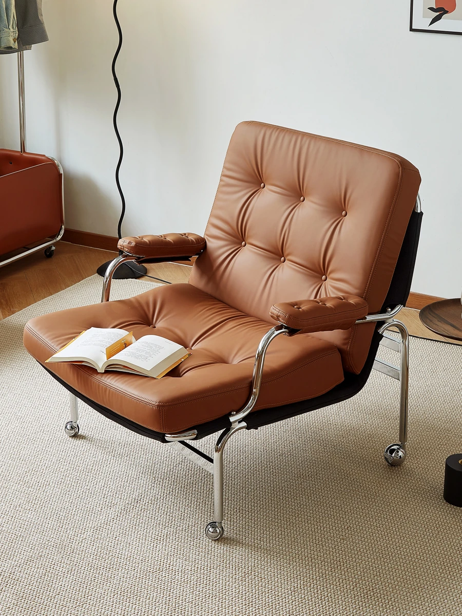 北欧デザインの一人用ソファチェア|馬革使用のスタイリッシュなリラックスチェア|寝室やバルコニーに最適|小さなスペースでも大活躍!