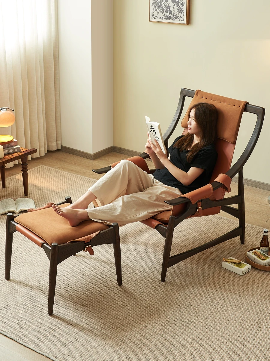 壱玖夢空間 北欧スタイルの無垢材使用!心地よいレザーの一人掛けソファチェア - 狩猟スタイルデザイン、侘寂の美を楽しむ特別な空間を演出!