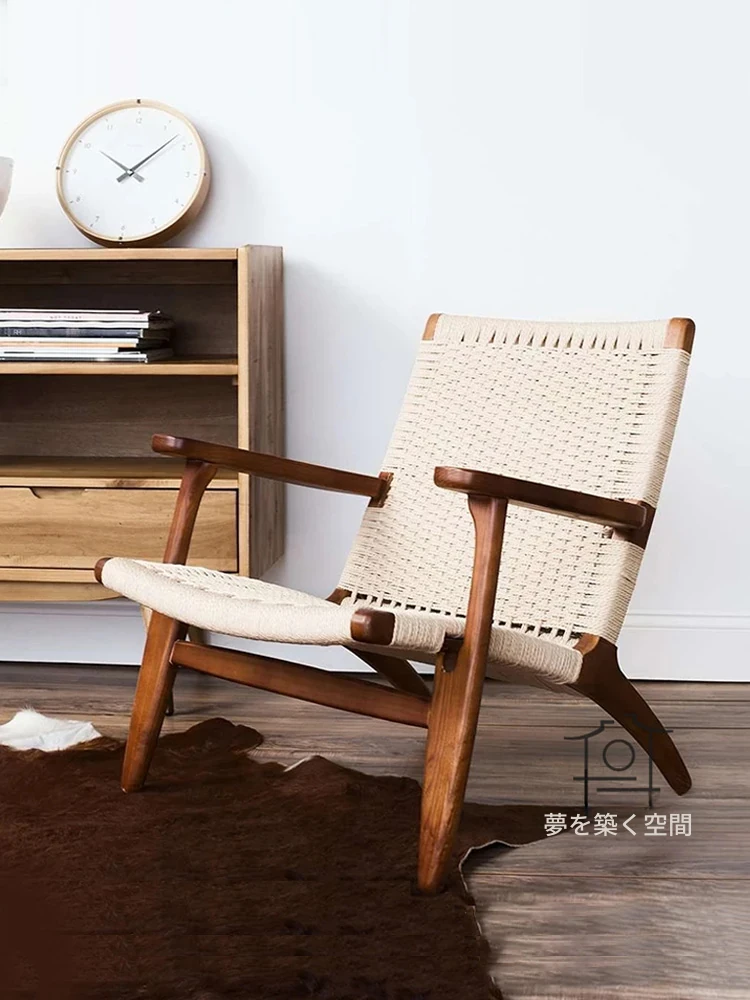 北欧スタイルの一人掛け無垢材リラックスチェア - リビングやバルコニーに最適!背もたれ付きで快適、モダンでシンプルなデザイン。小さなお部屋にもぴったりの家用ソファチェア。