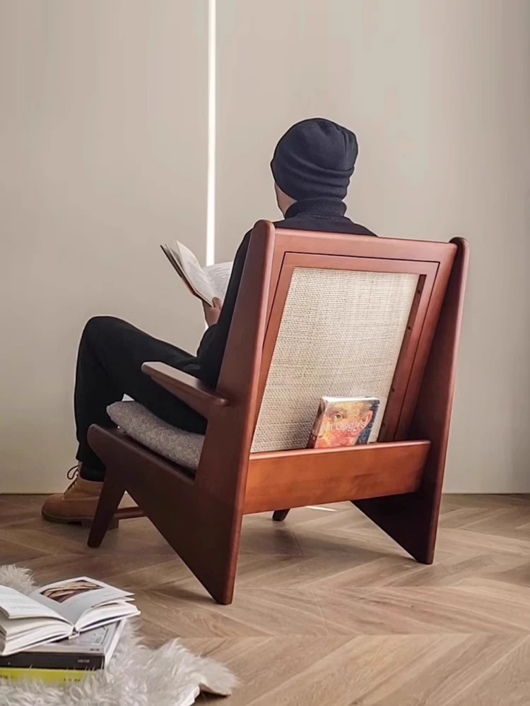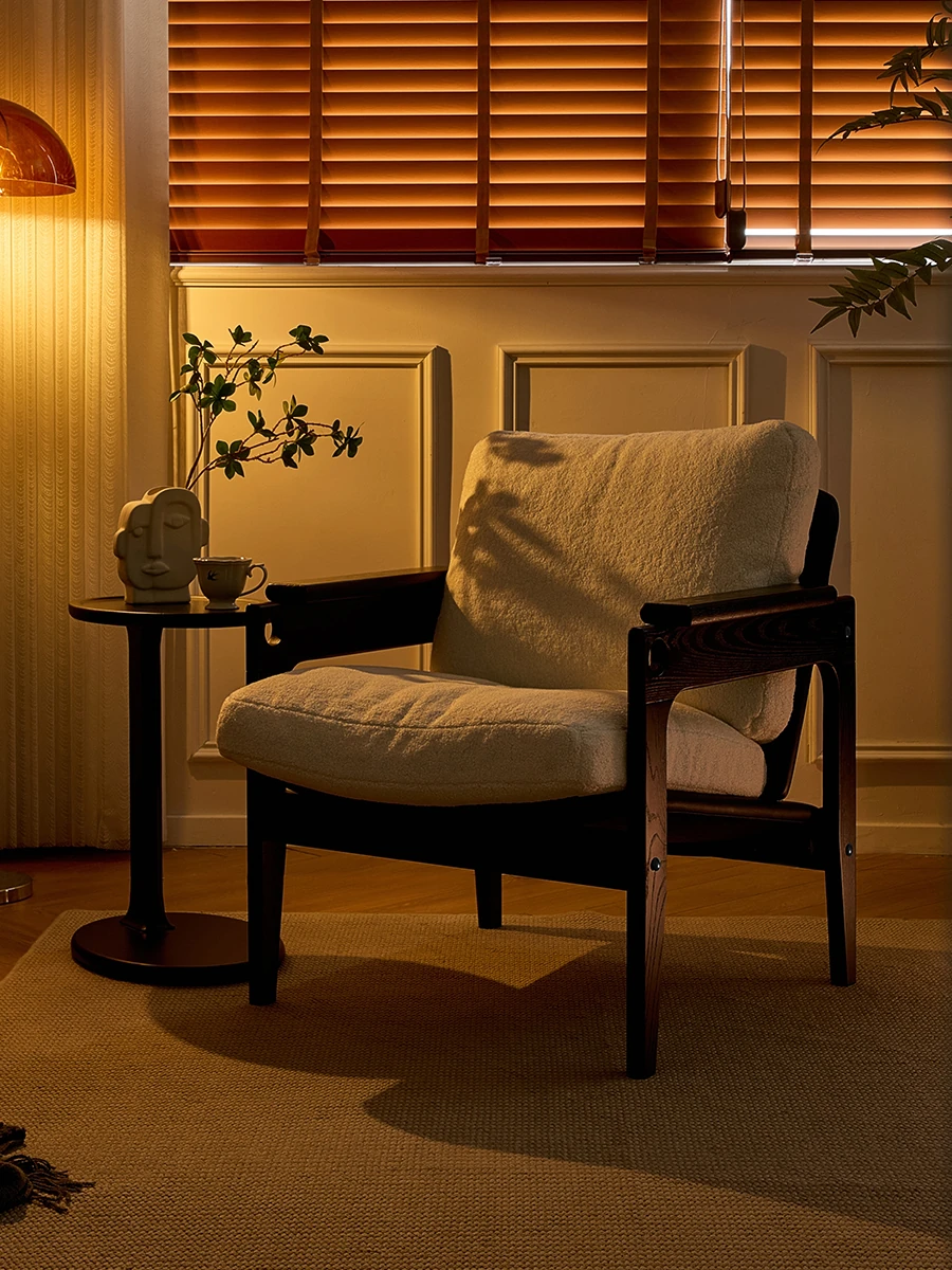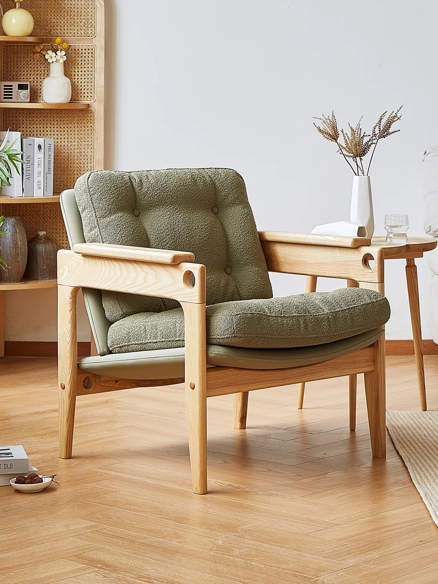 北欧レトロデザインの一人用ソファチェア|無垢材使用|リビングに最適なシンプルでモダンなスタイル|小さなスペースでも快適なリラックス空間を実現!