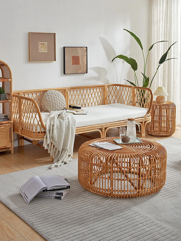 壹玖夢の空間 北欧風&和風 天然ラタン編みソファセット 子供部屋にもぴったりなシングルラタンベッド