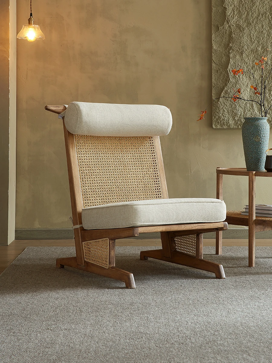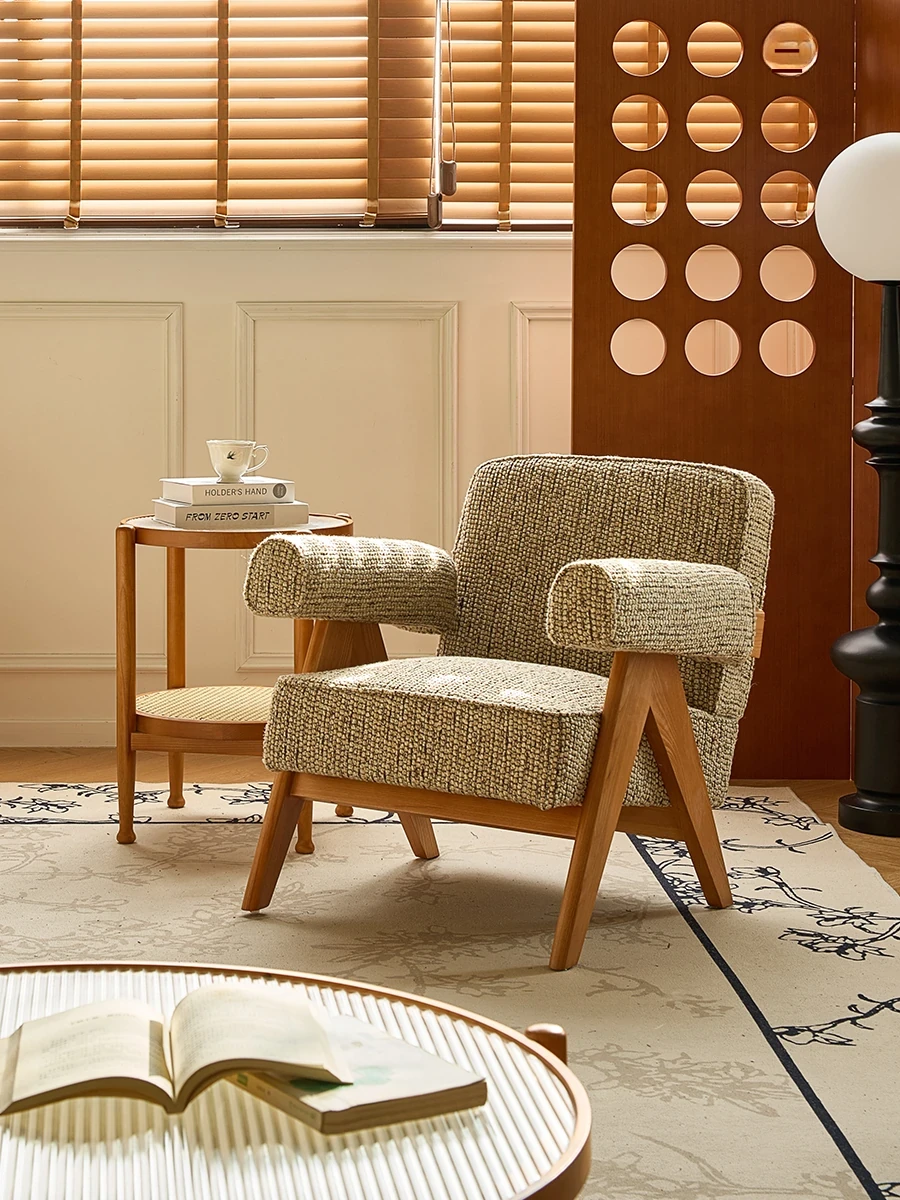 侘寂風デザインのチャンディガール製実木バルコニー用ダイニングソファチェア - インスタ映えする一人掛けリラックスチェア、コンパクトなリビングに最適!