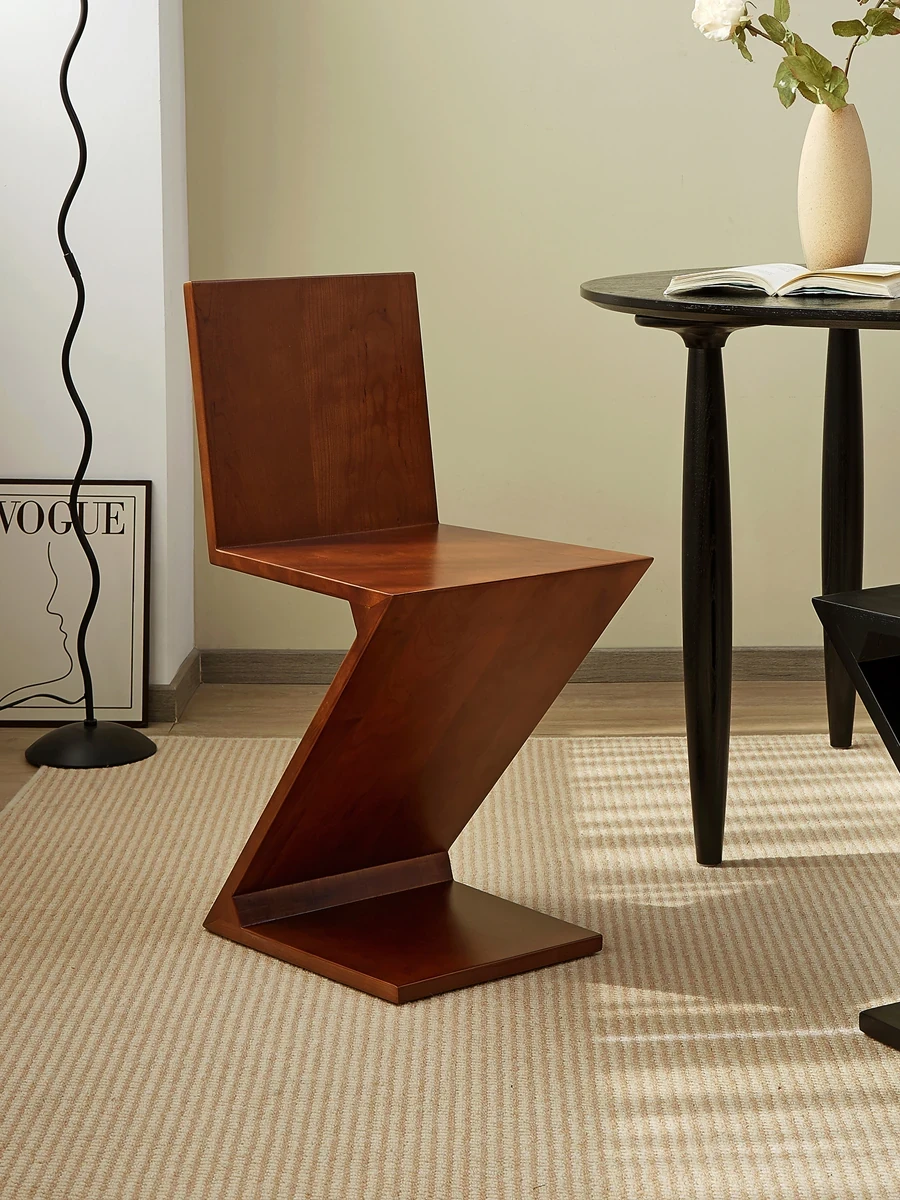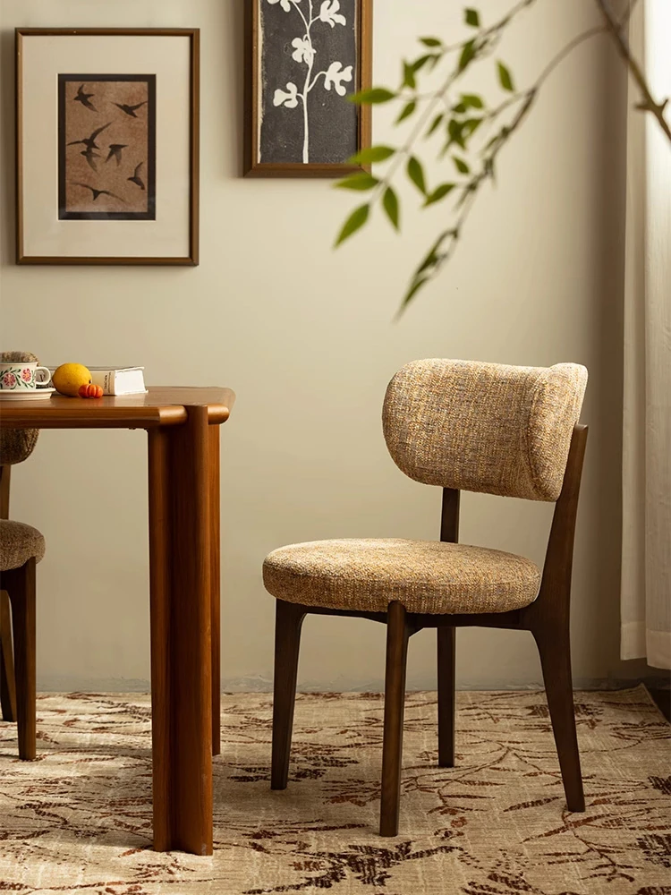 北欧風レトロデザインの無垢材背もたれ付きダイニングチェア|家庭用アーティスティックなリラックスチェア|インスタ映えするシンプルでモダンな小型住宅向け家具!