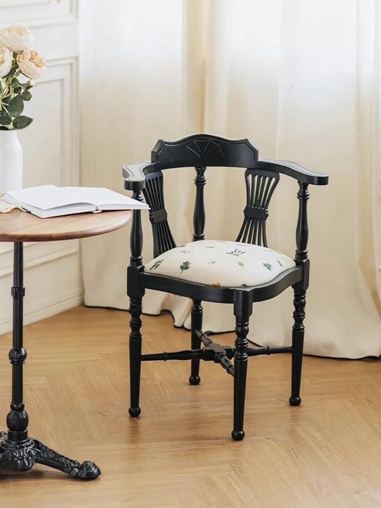 2025年新作 フレンチクリーム風デザイン 高級感あふれる木製ブラックダイニングチェア!デザイナーズスタイルで、寝室や家庭用にもぴったり。洗練された空間を演出するアイテムです!