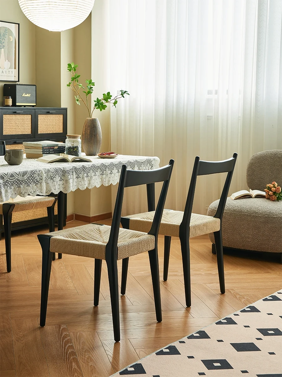 中古風のロープ編みダイニングチェア|和風・無垢材・フレンチヴィンテージデザイン|おしゃれなウィッディングラタンチェア|家族や友人との素敵な食事時間にぴったり!