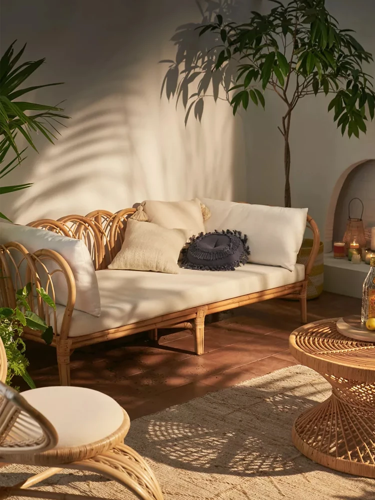 OneNine Dream Space Nordic Japanese Natural Rattan Woven Sofa Set - Perfect for Living Rooms and Kids' Rooms, Includes Single Rattan Bed