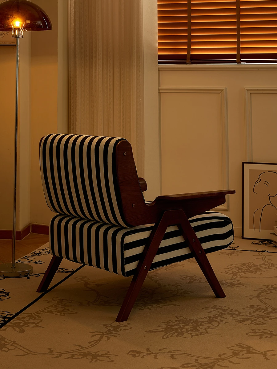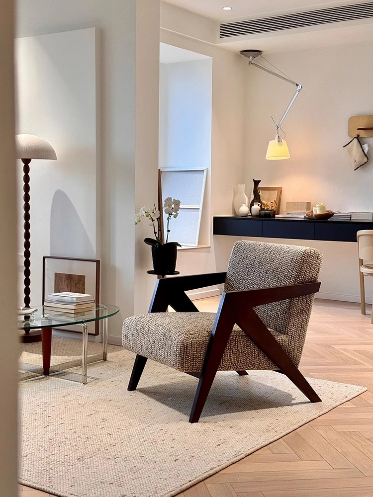 Nordic Retro Single Sofa Chair - Solid Wood, Stylish and Comfortable for Home Use, Ideal for Modern Small Spaces and Casual Living Rooms, Designer Lazy Chair.
