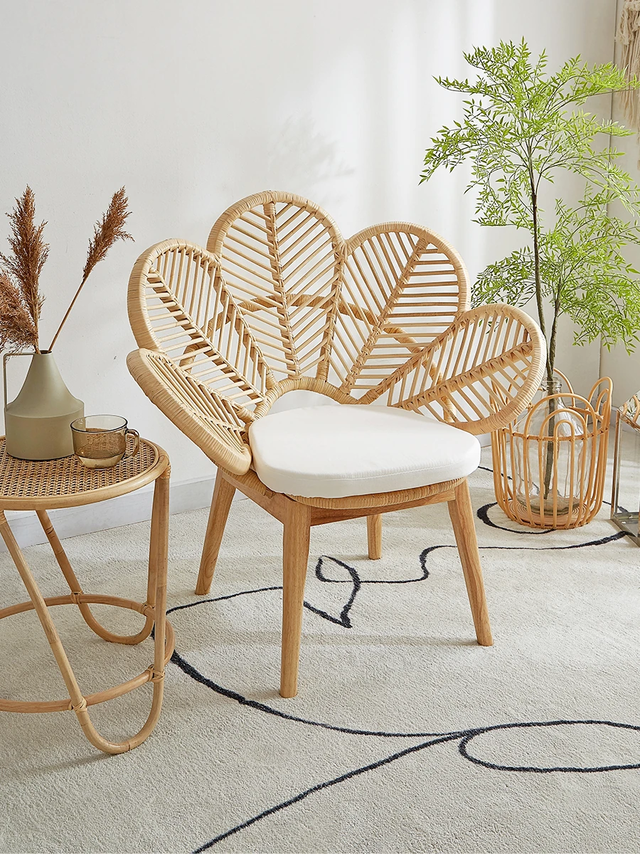 Yijiu Dream Space Japanese Natural Rattan Flower Chair - Elegant Rattan Sofa Peacock Chair for B&B Photography Showroom