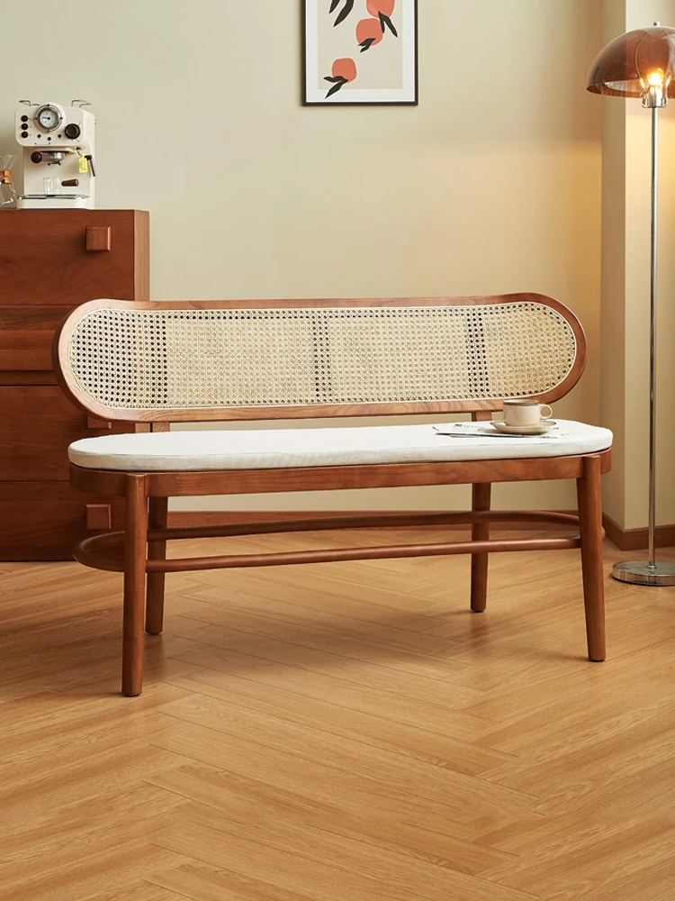 Yijiu Dream Space Japanese-Style Solid Wood Rattan Backrest Bench - Perfect for Small Homes, Ideal as a Bed-End Shoe Changing Stool or Sofa Chair