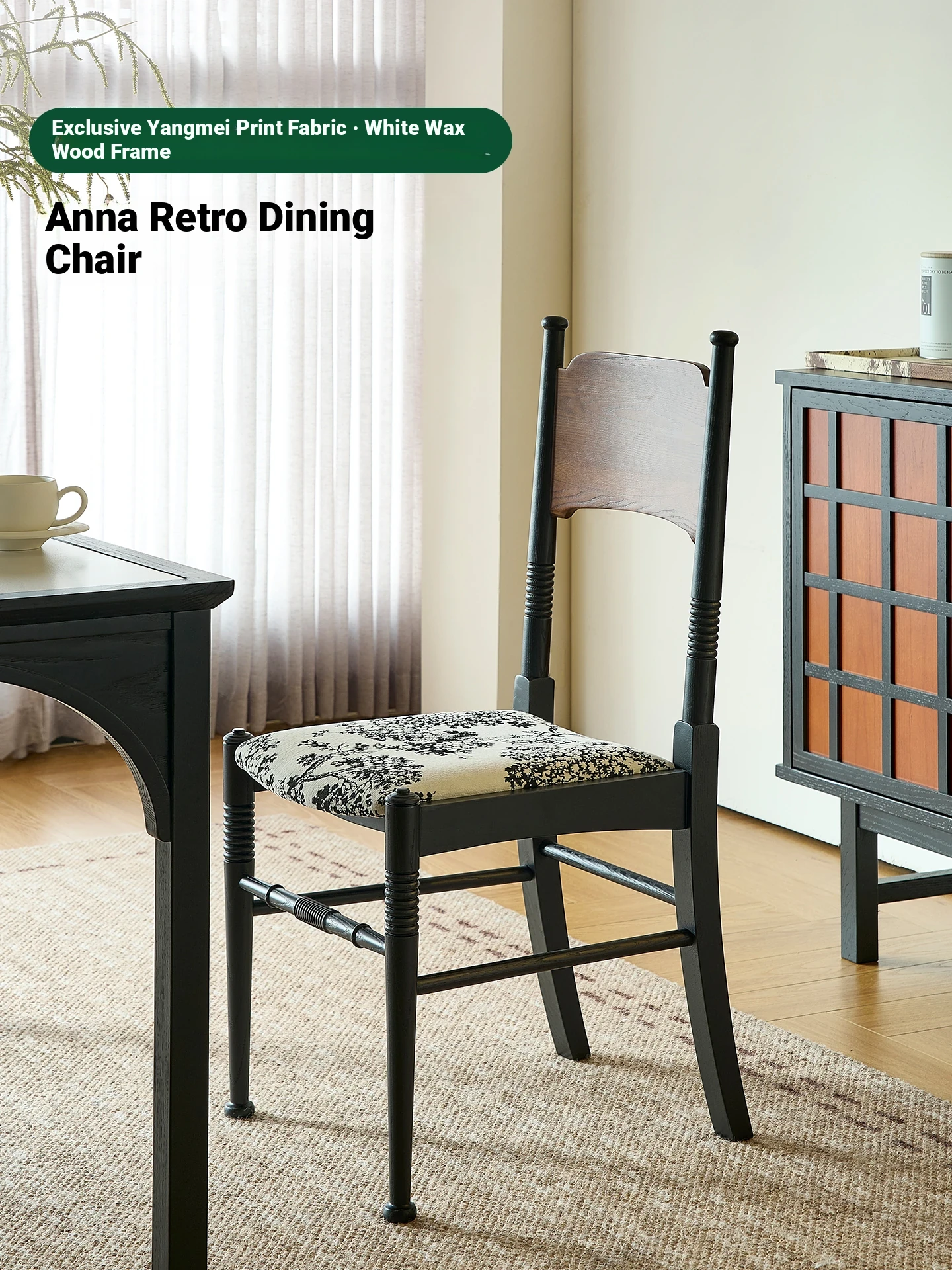 Anna Solid Wood Dining Chair with Backrest - 2025 New Design for Home Use, Stylish Dining Stool, Tea Chair, Vintage-Style Living Room Seating
