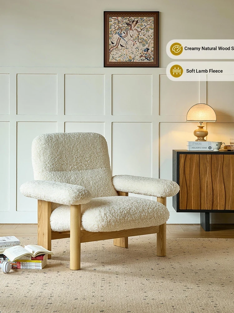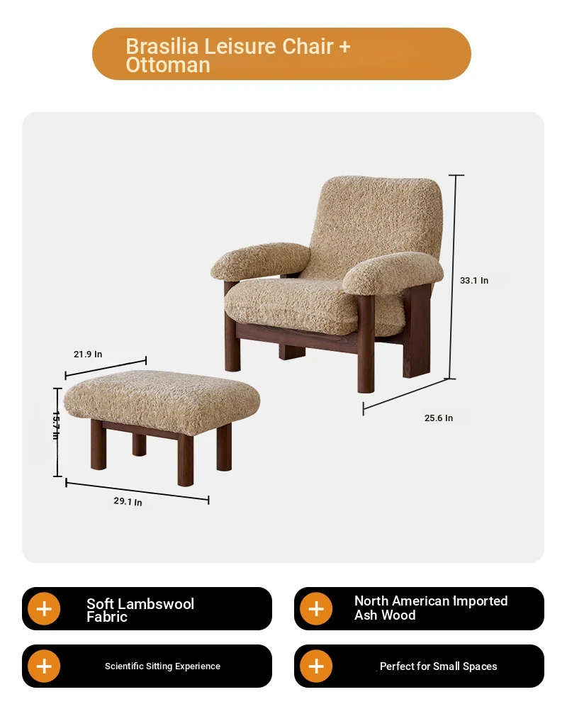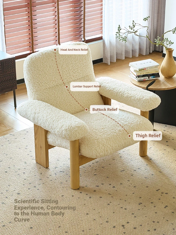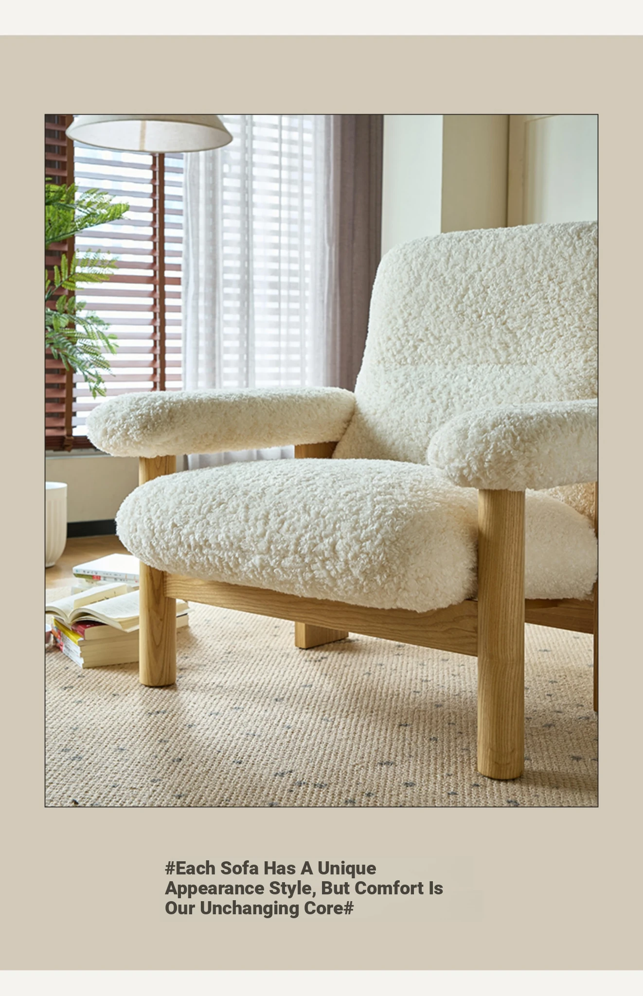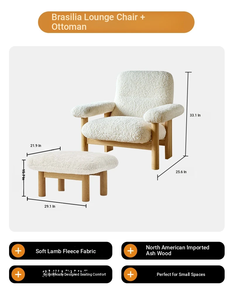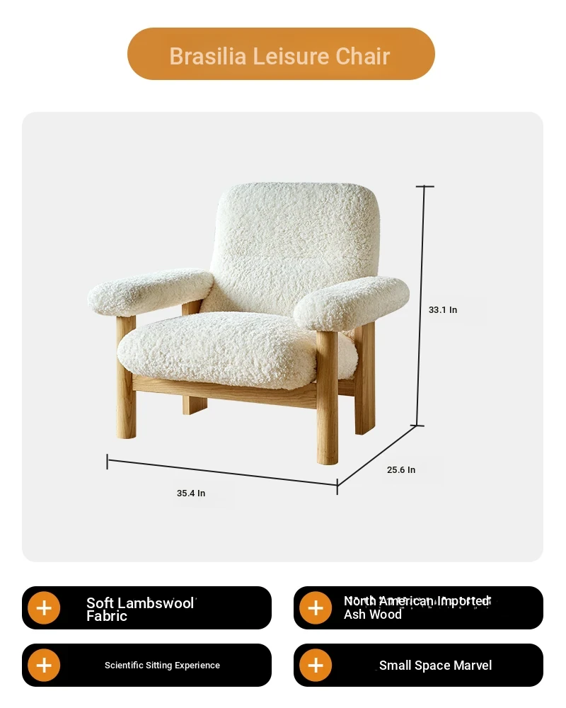 Brasilia Leisure Chair / Ultra-Comfortable Cream Fabric Single Sofa for Small Spaces / Solid Wood Lazy Chair
