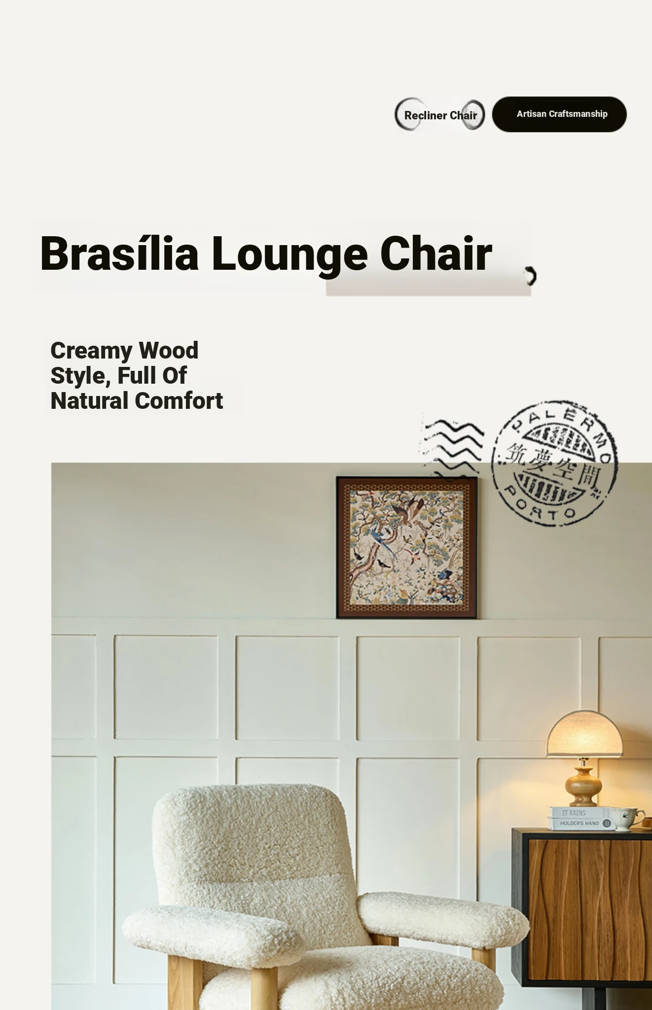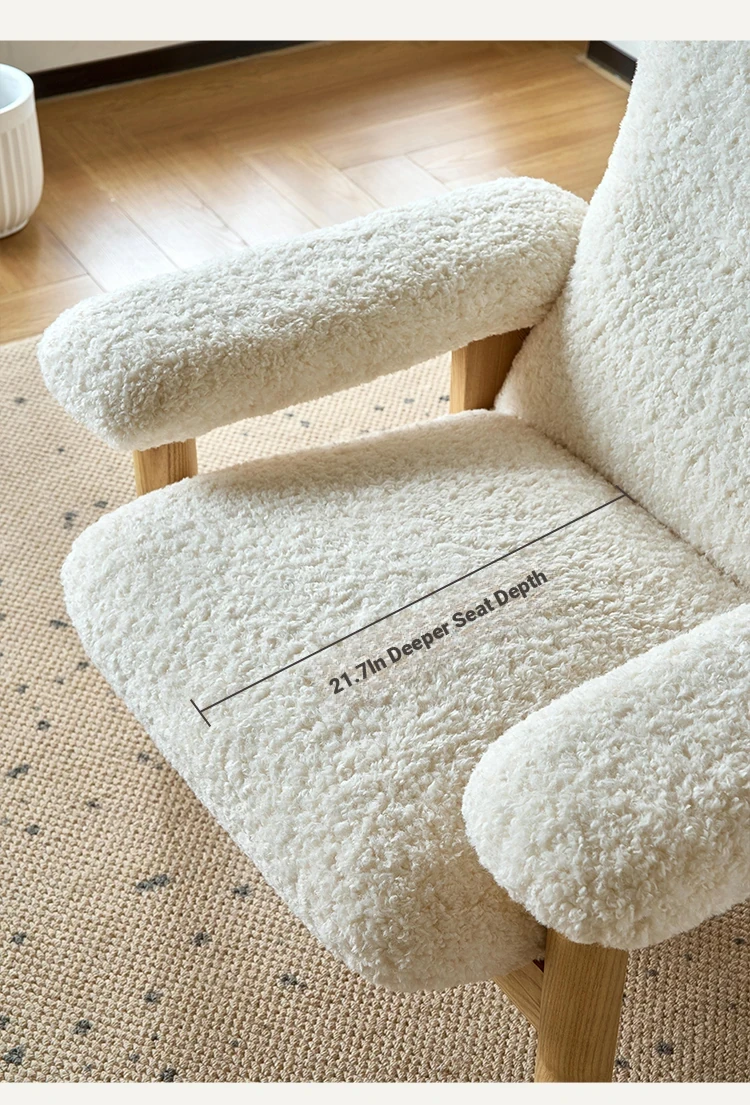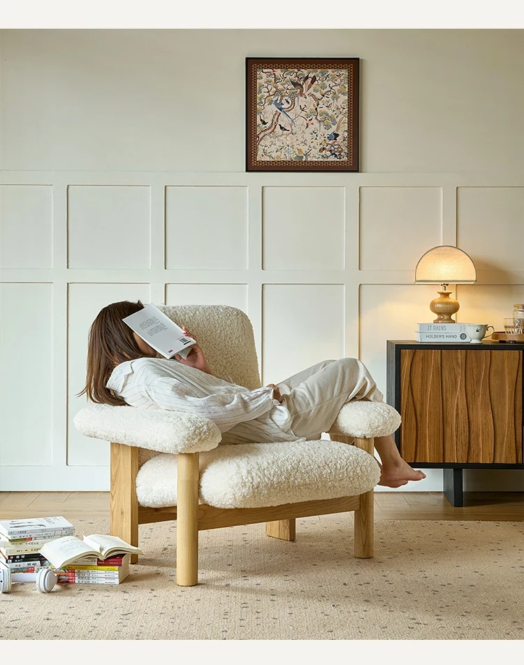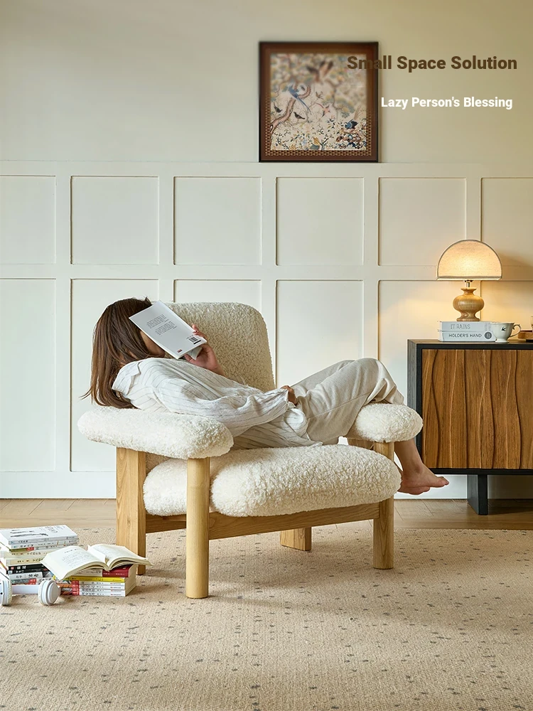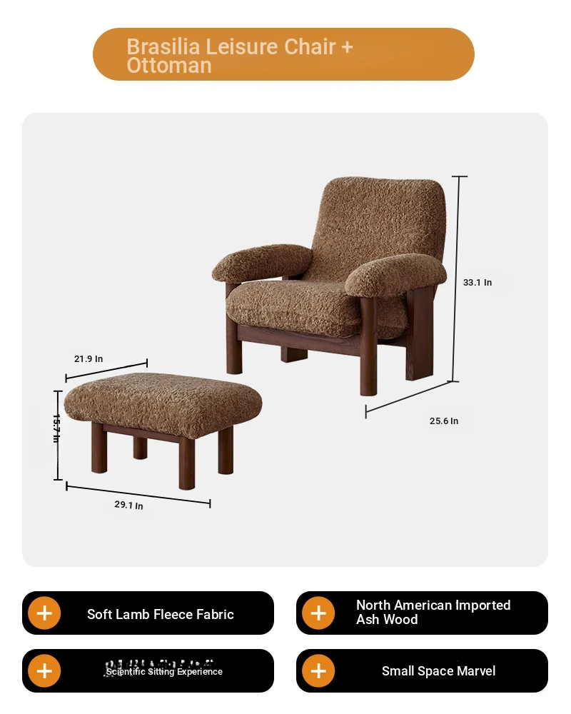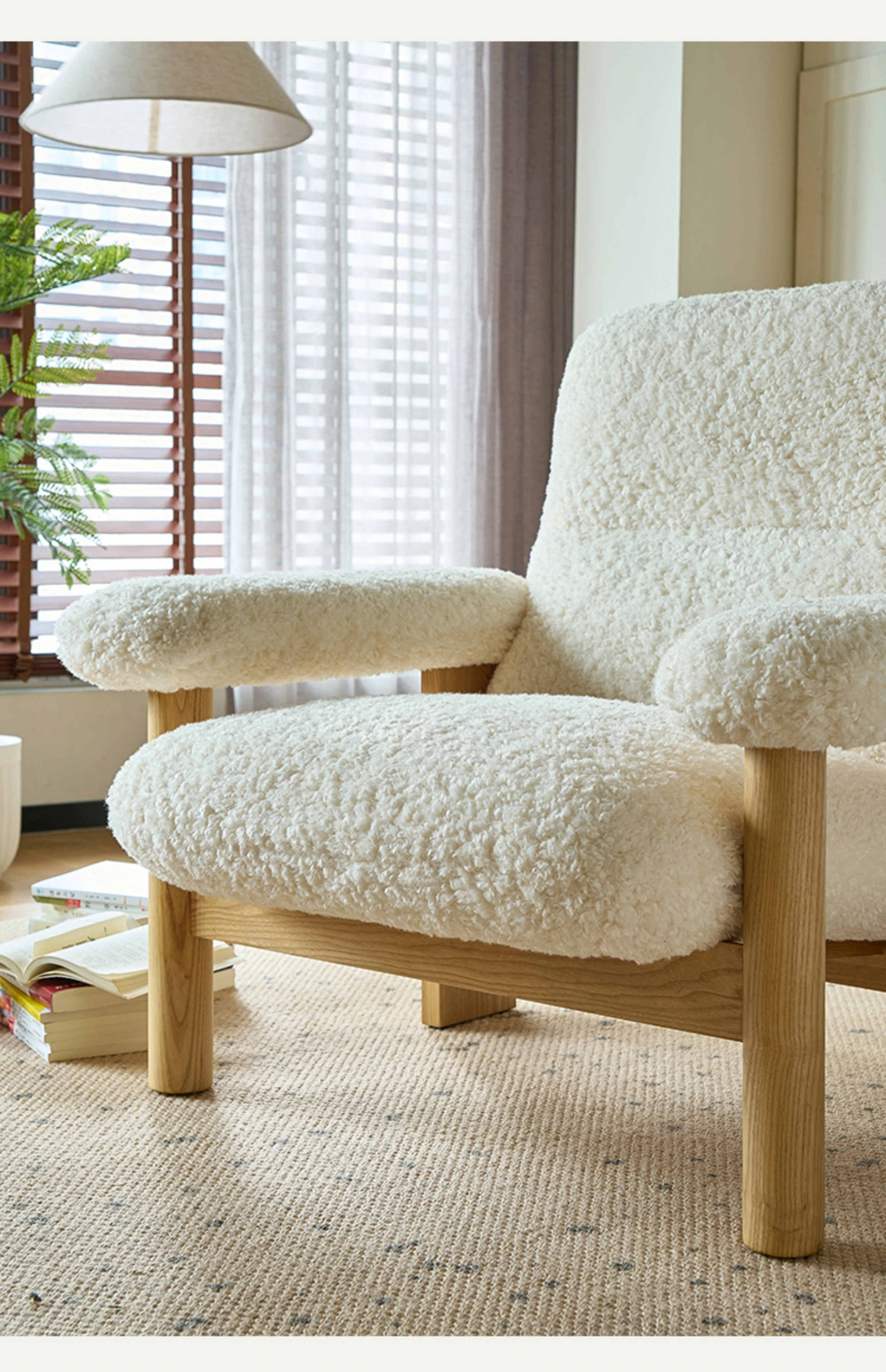 Brasilia Leisure Chair / Ultra-Comfortable Cream Fabric Single Sofa for Small Spaces / Solid Wood Lazy Chair