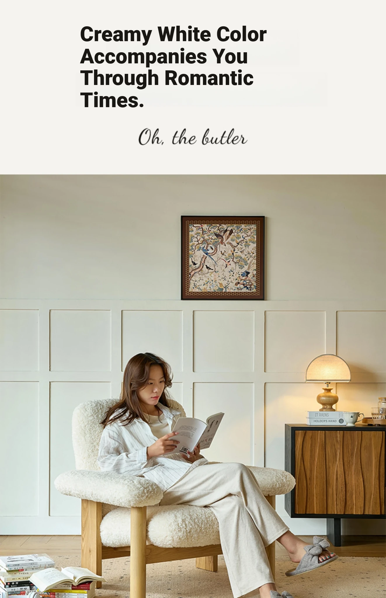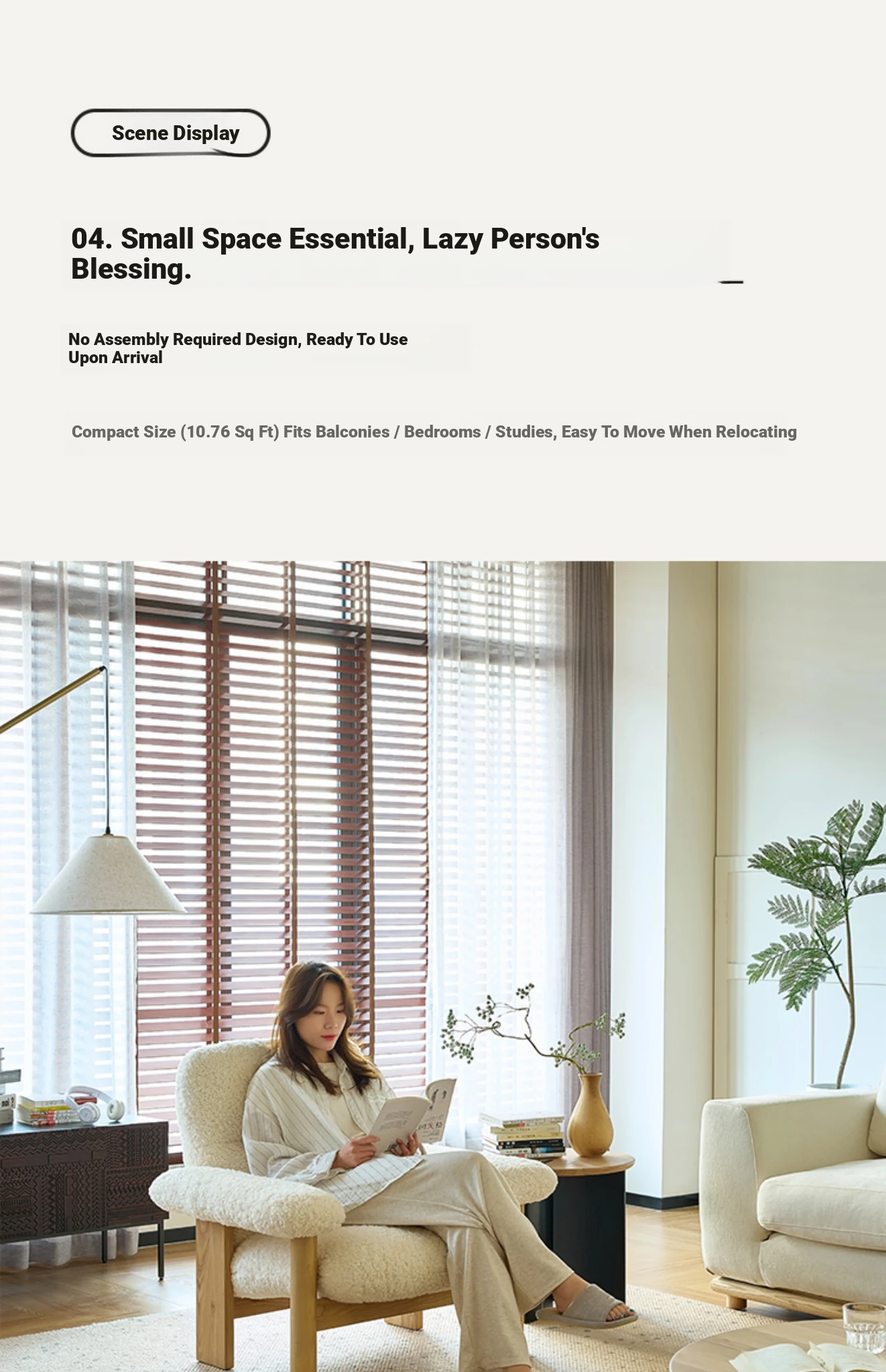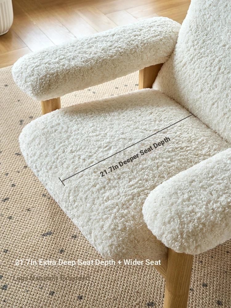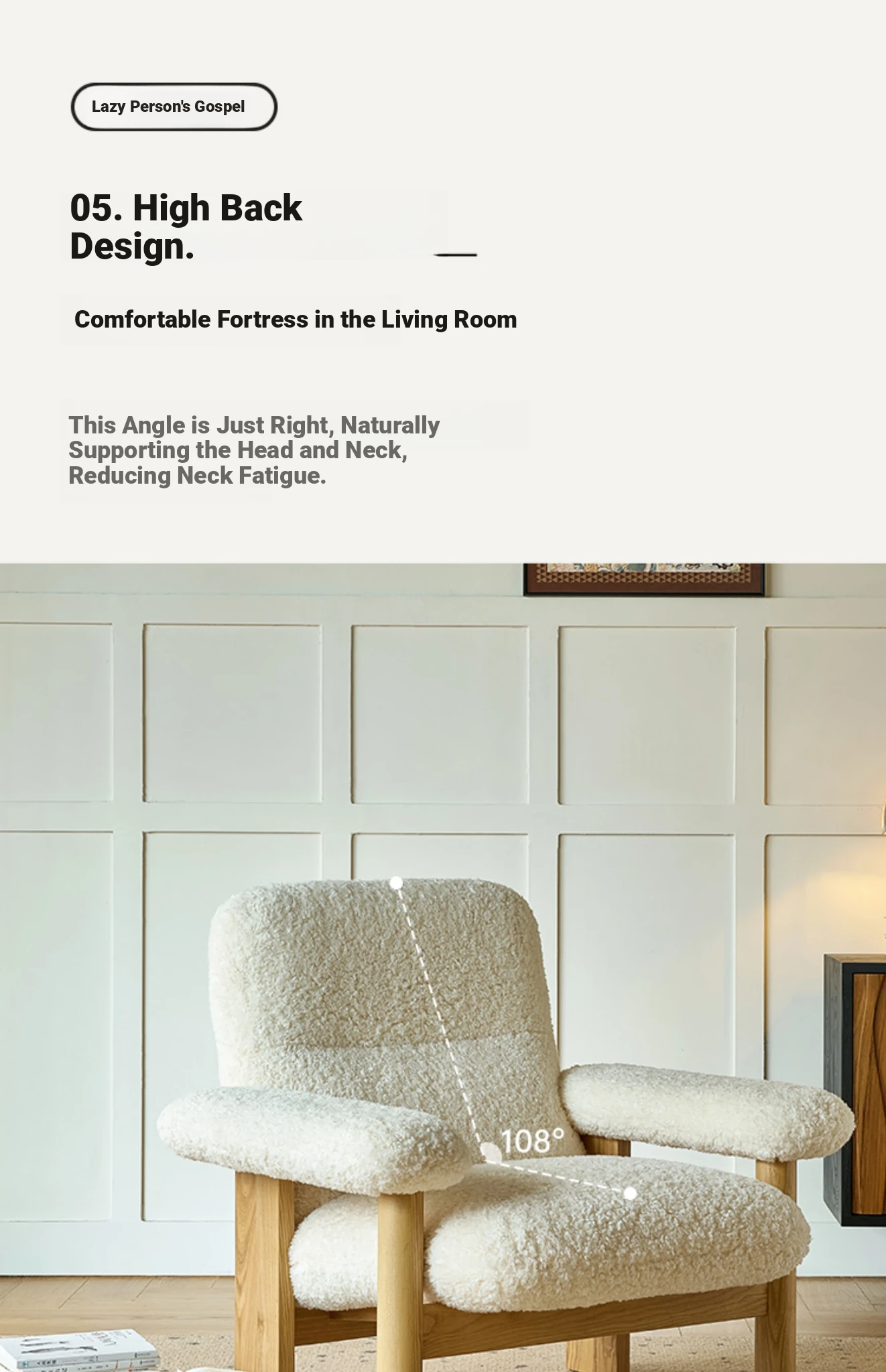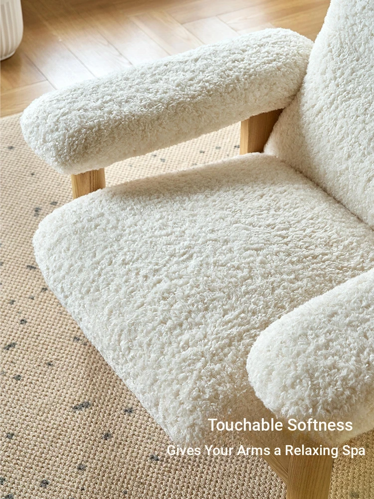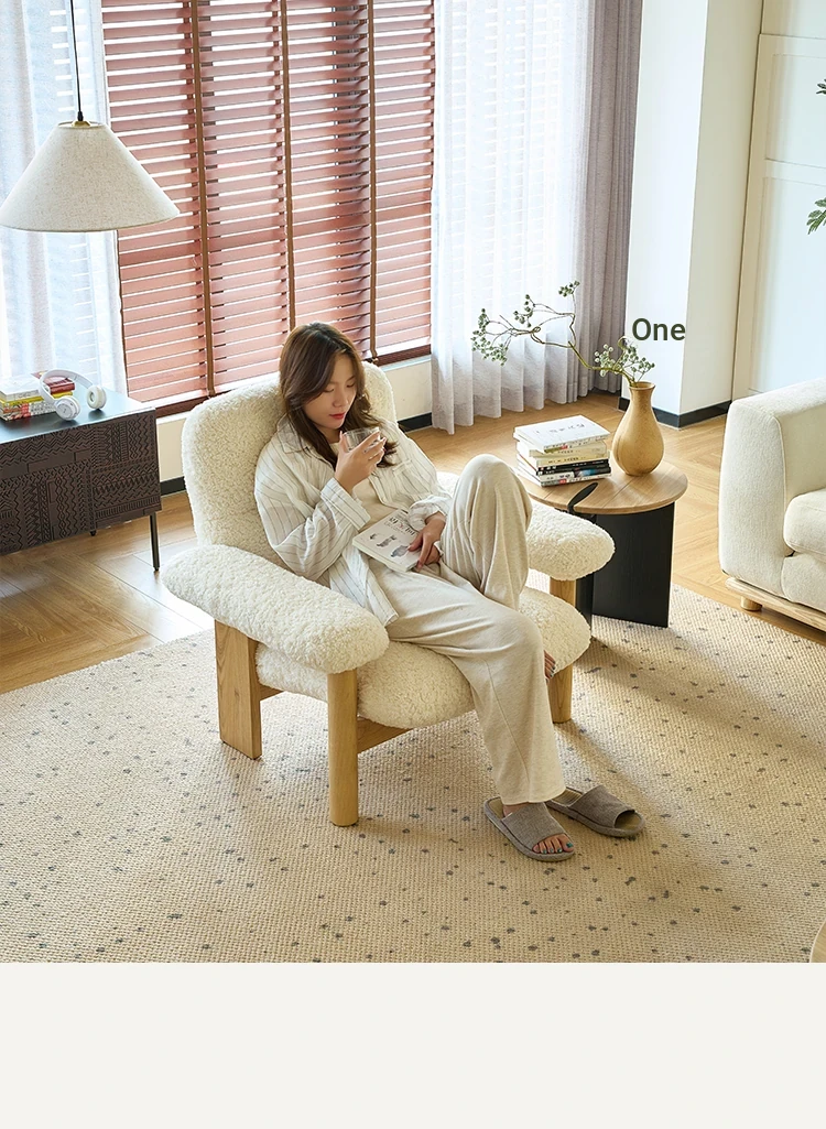 Brasilia Leisure Chair / Ultra-Comfortable Cream Fabric Single Sofa for Small Spaces / Solid Wood Lazy Chair