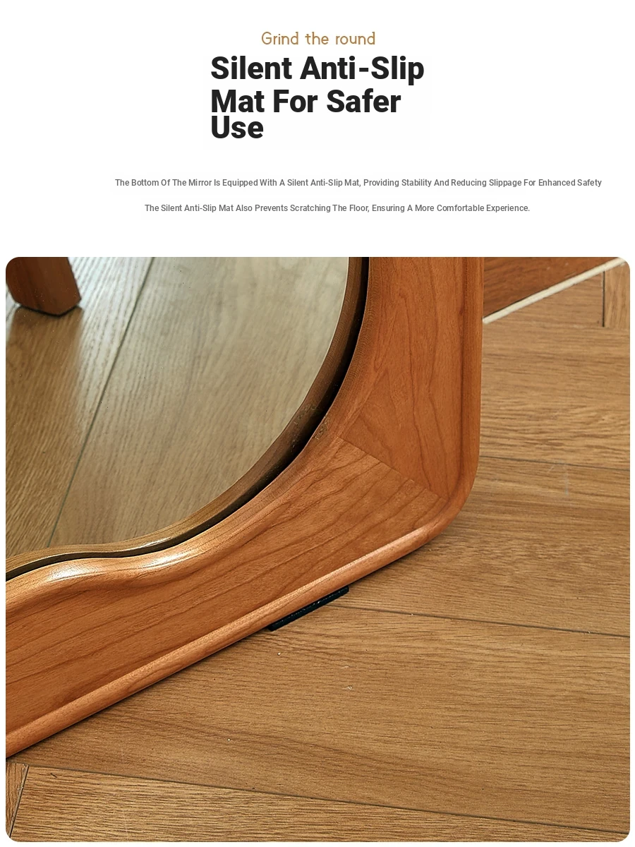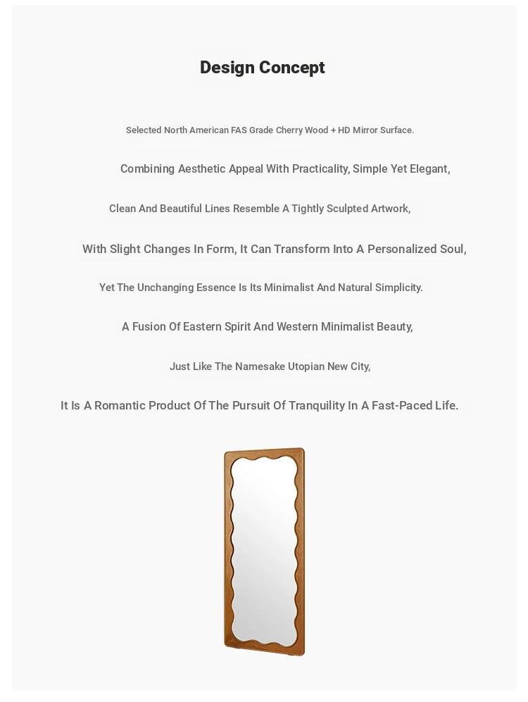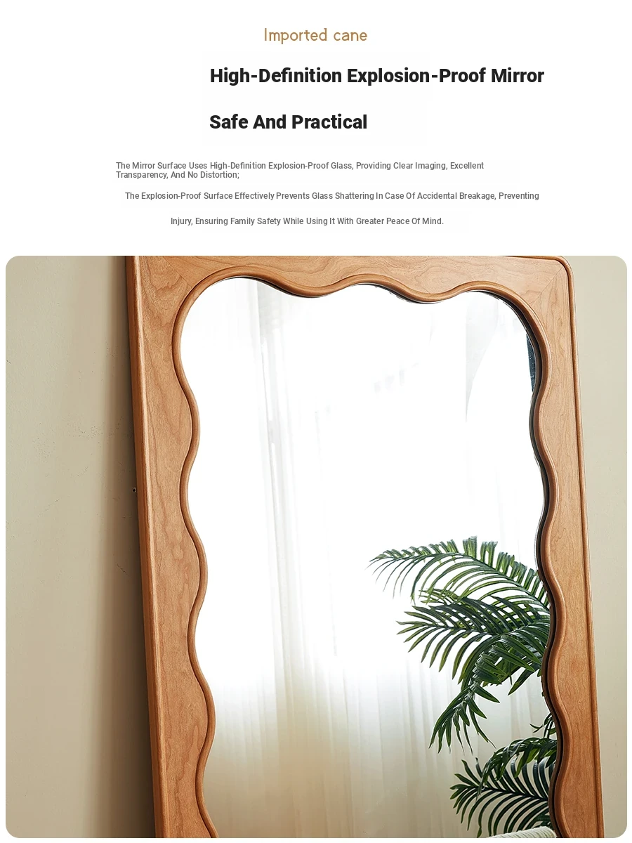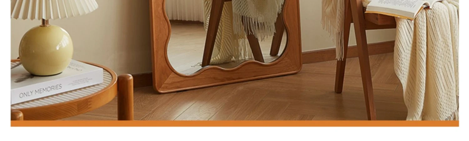 French Style Full-Length Floor Mirror - Solid Wood, Wave Design, Cherry Wood, Trendy Dressing Mirror for Bedroom, Perfect for Small Spaces