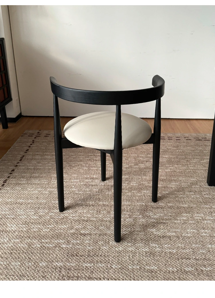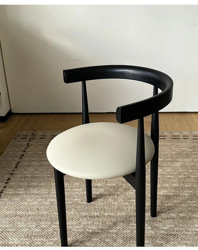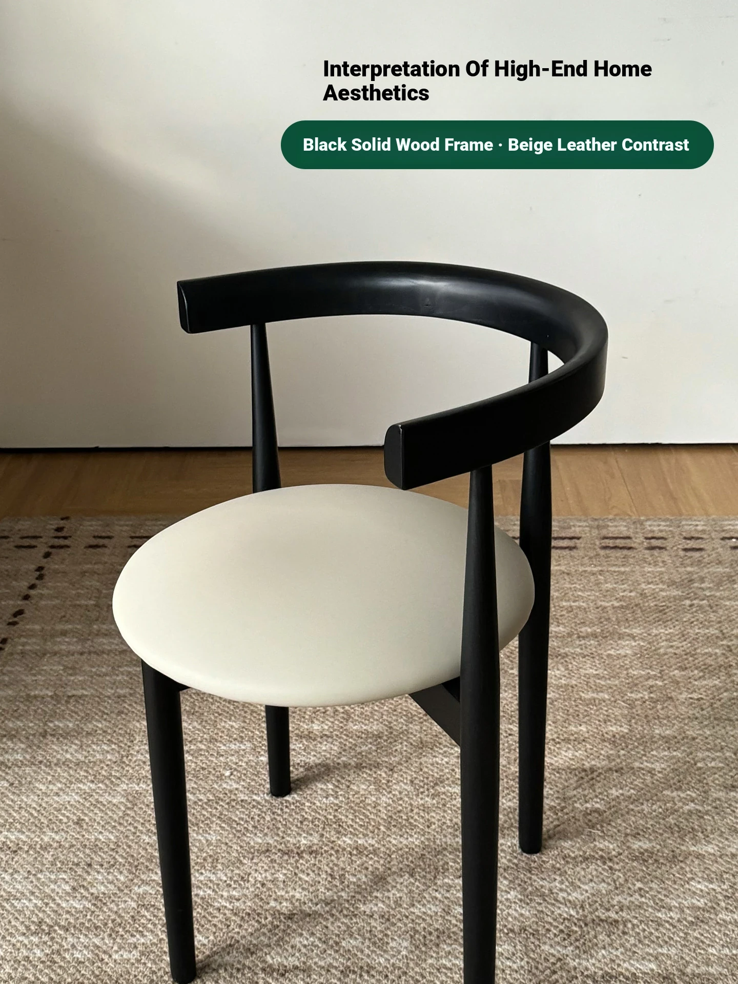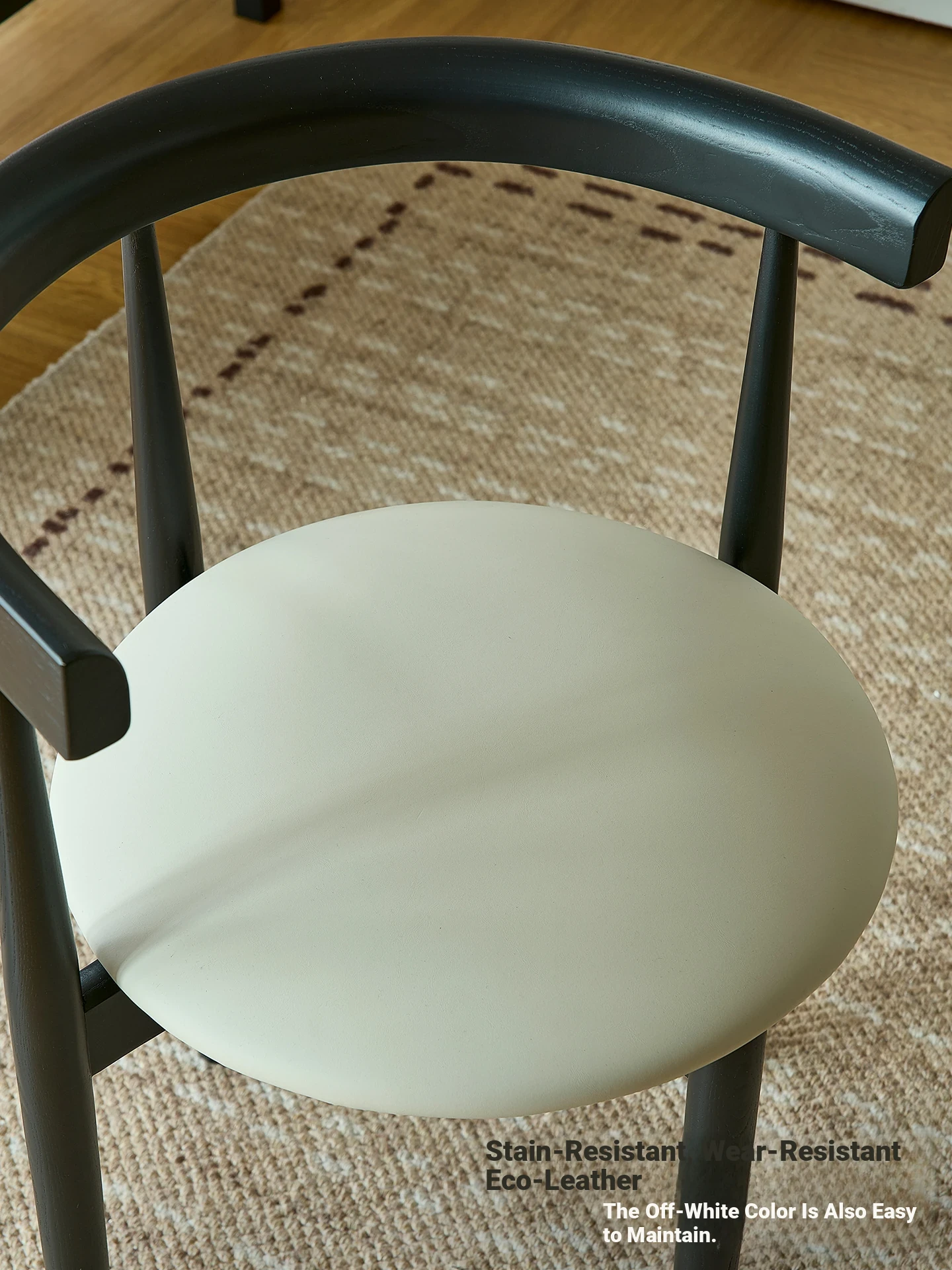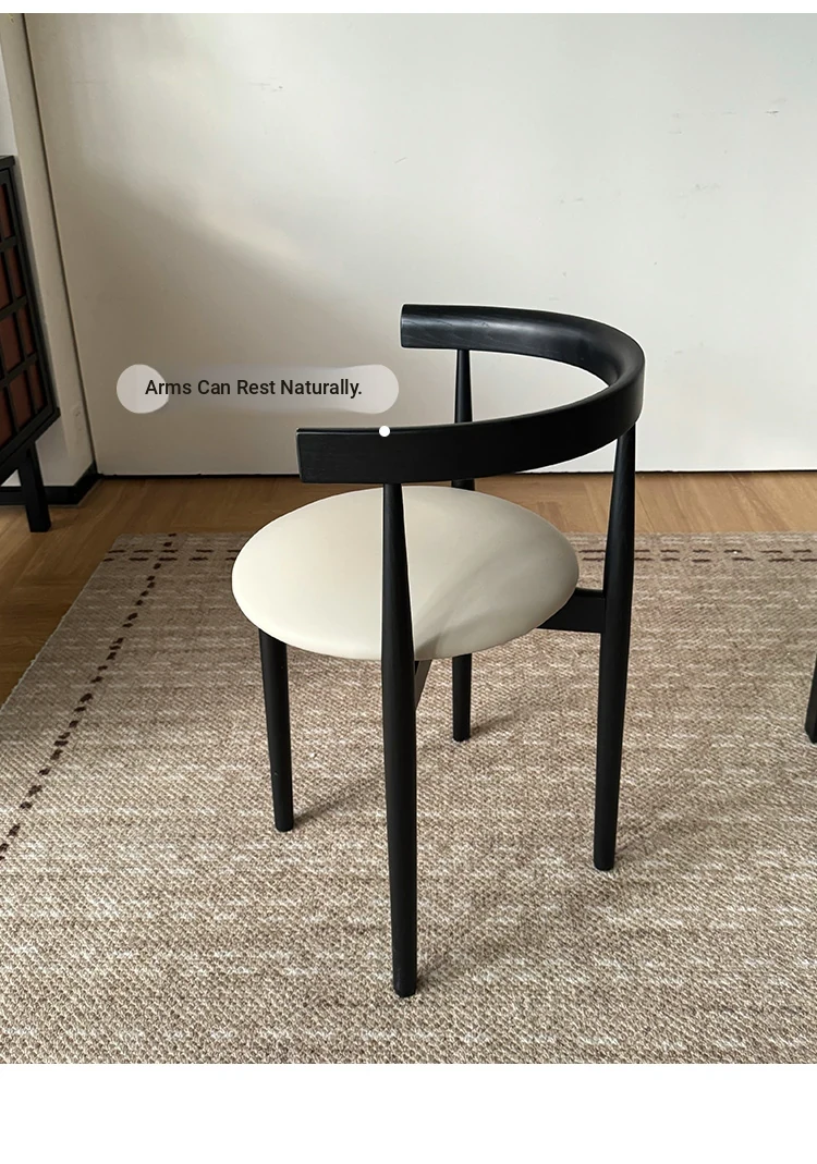 Stylish White Leather Round Chair for Small Spaces - Designer Mid-Century Dining Chair with Backrest, Perfect for Home, Cafe, and Restaurant Use, Combining Comfort and Elegance in Solid Wood