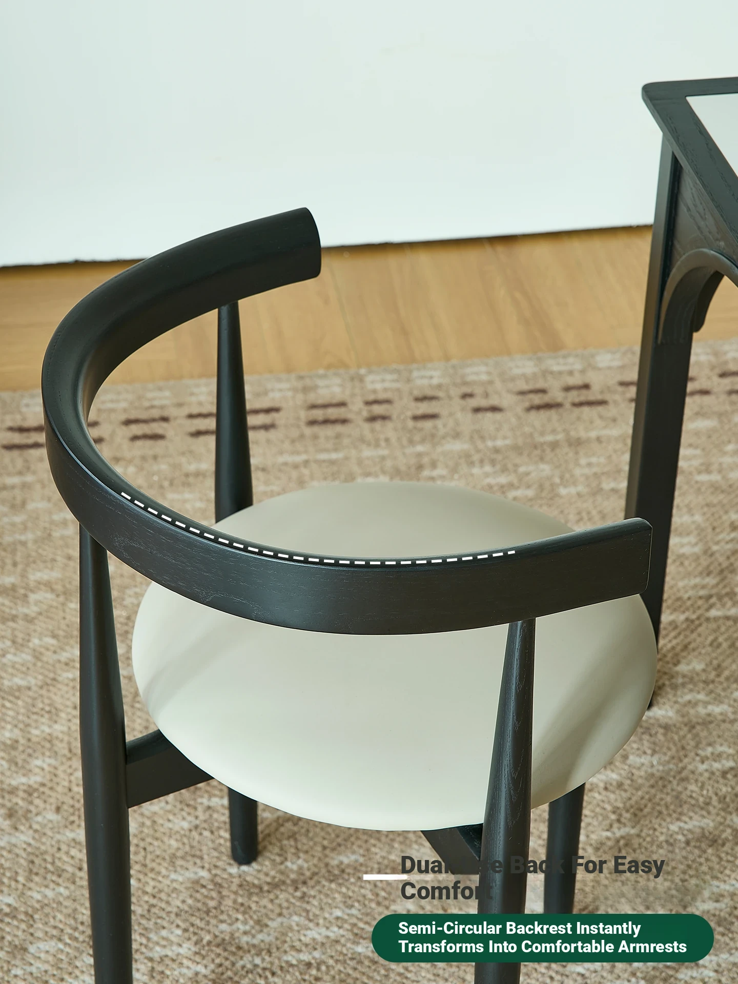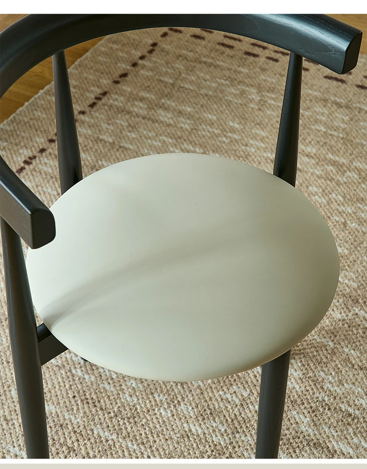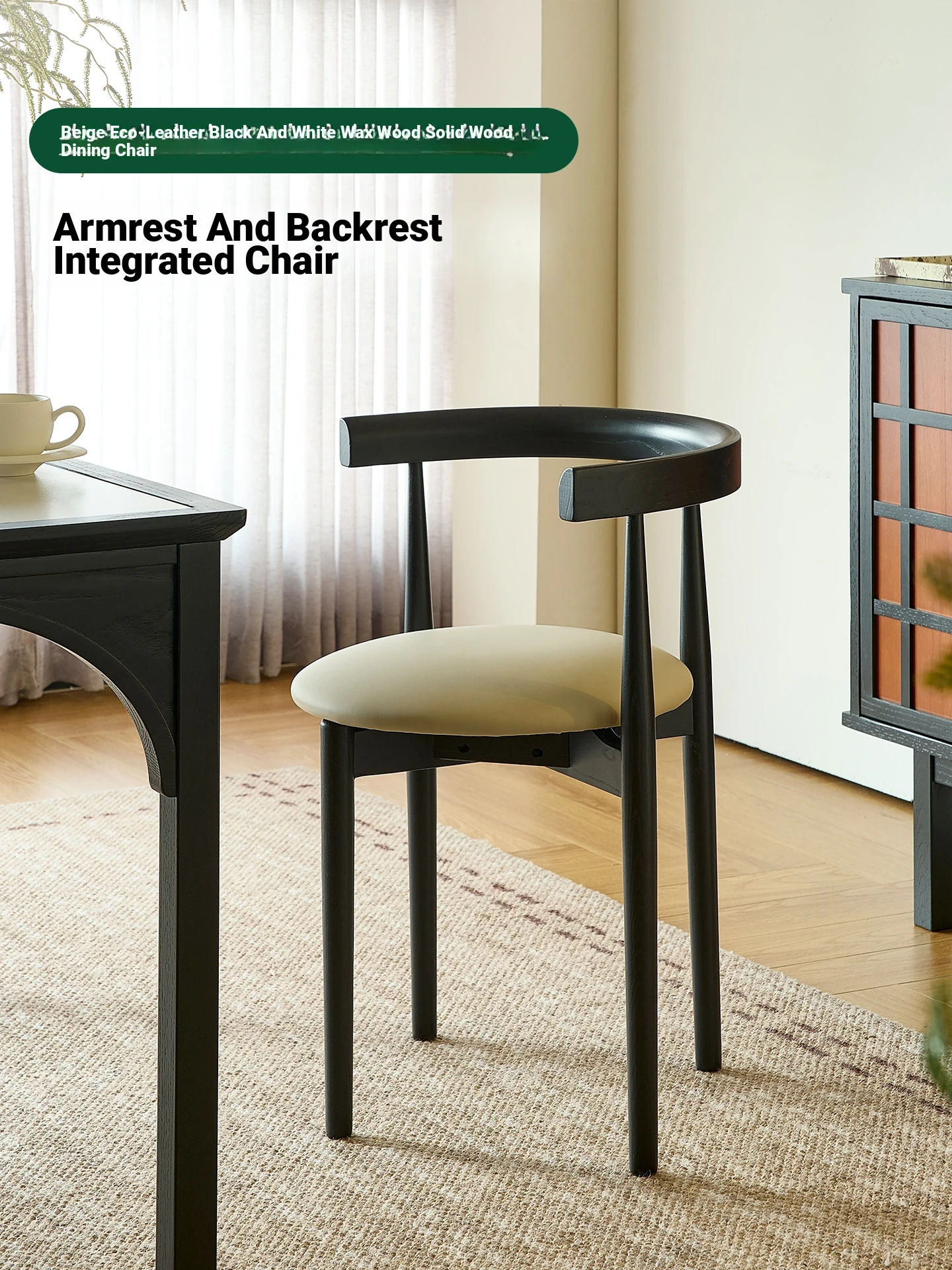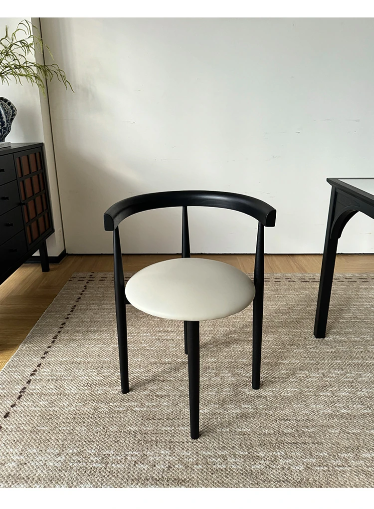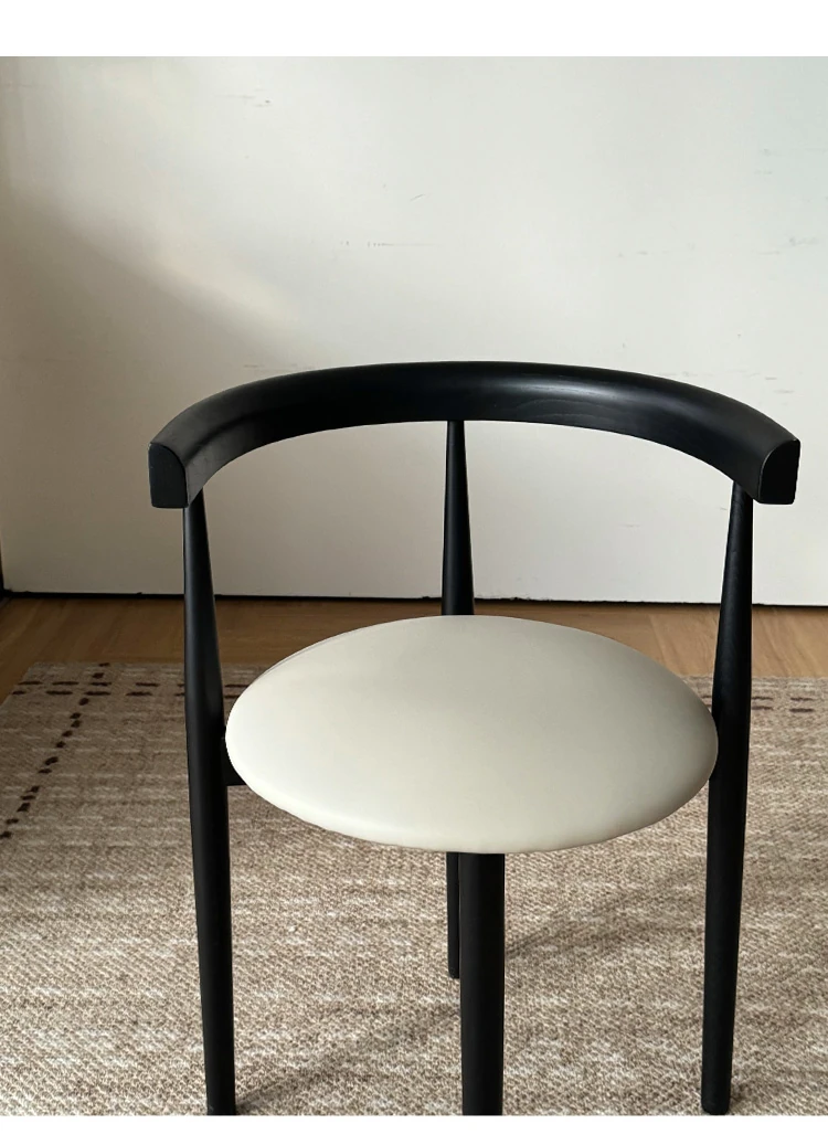 Stylish White Leather Round Chair for Small Spaces - Designer Mid-Century Dining Chair with Backrest, Perfect for Home, Cafe, and Restaurant Use, Combining Comfort and Elegance in Solid Wood