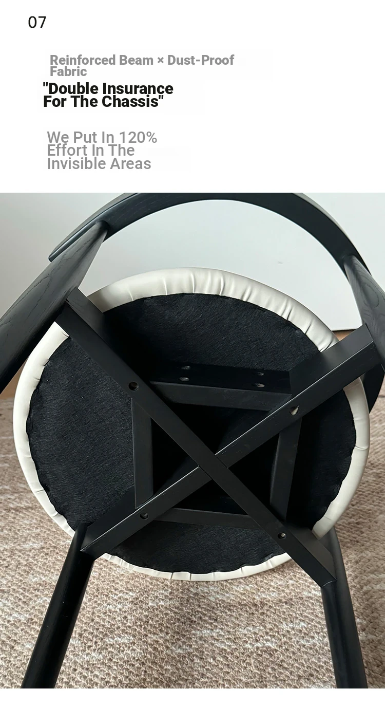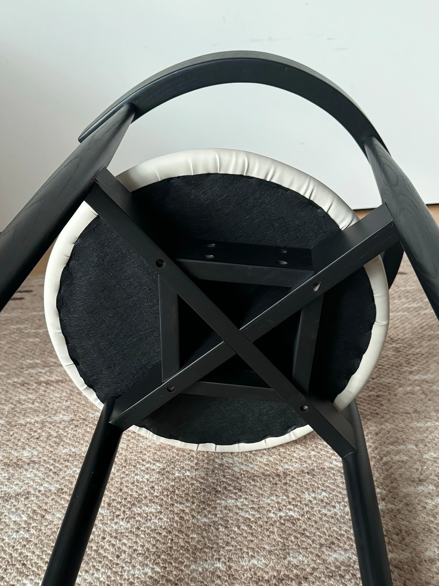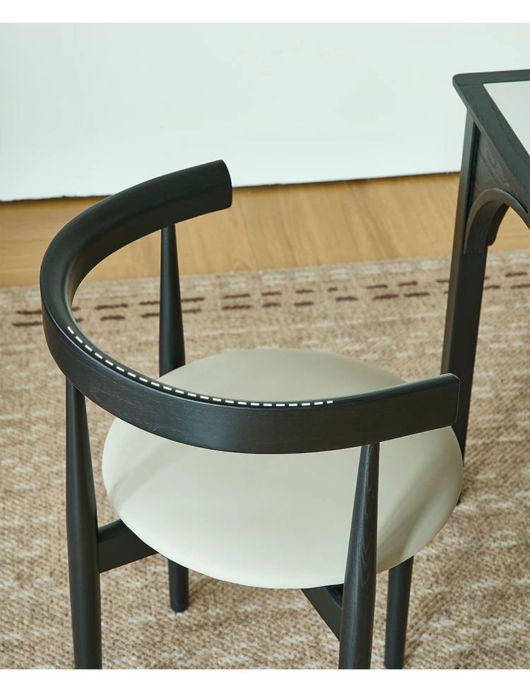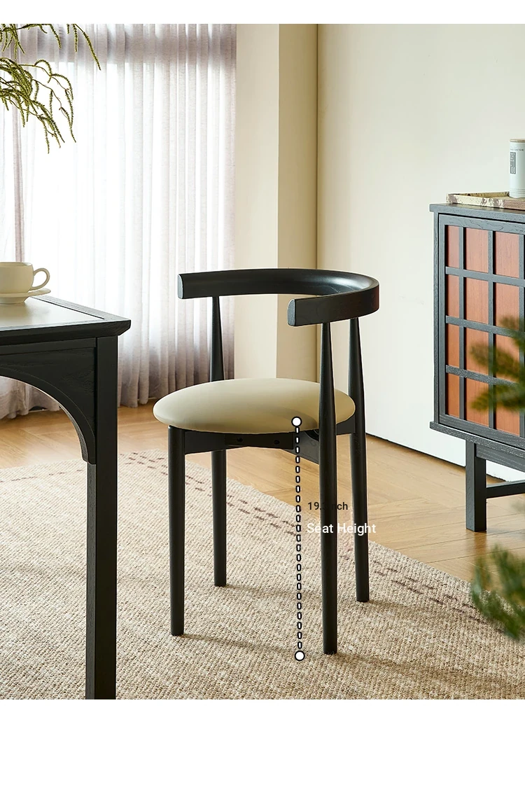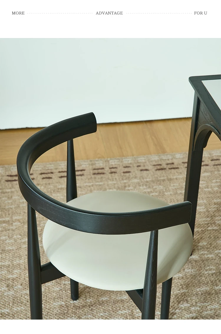 Stylish White Leather Round Chair for Small Spaces - Designer Mid-Century Dining Chair with Backrest, Perfect for Home, Cafe, and Restaurant Use, Combining Comfort and Elegance in Solid Wood