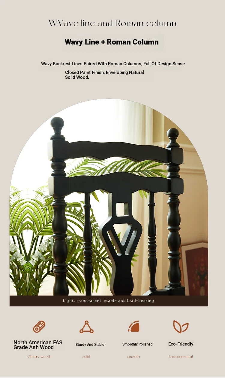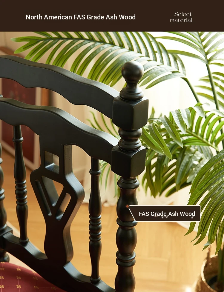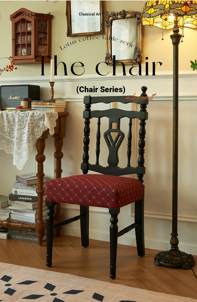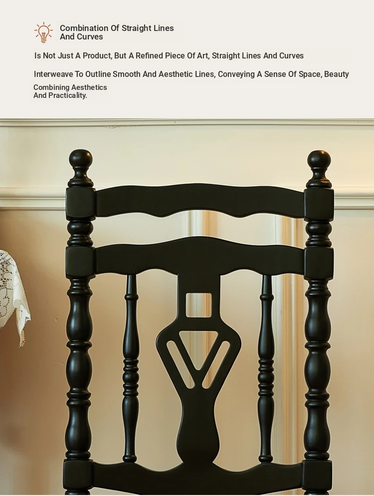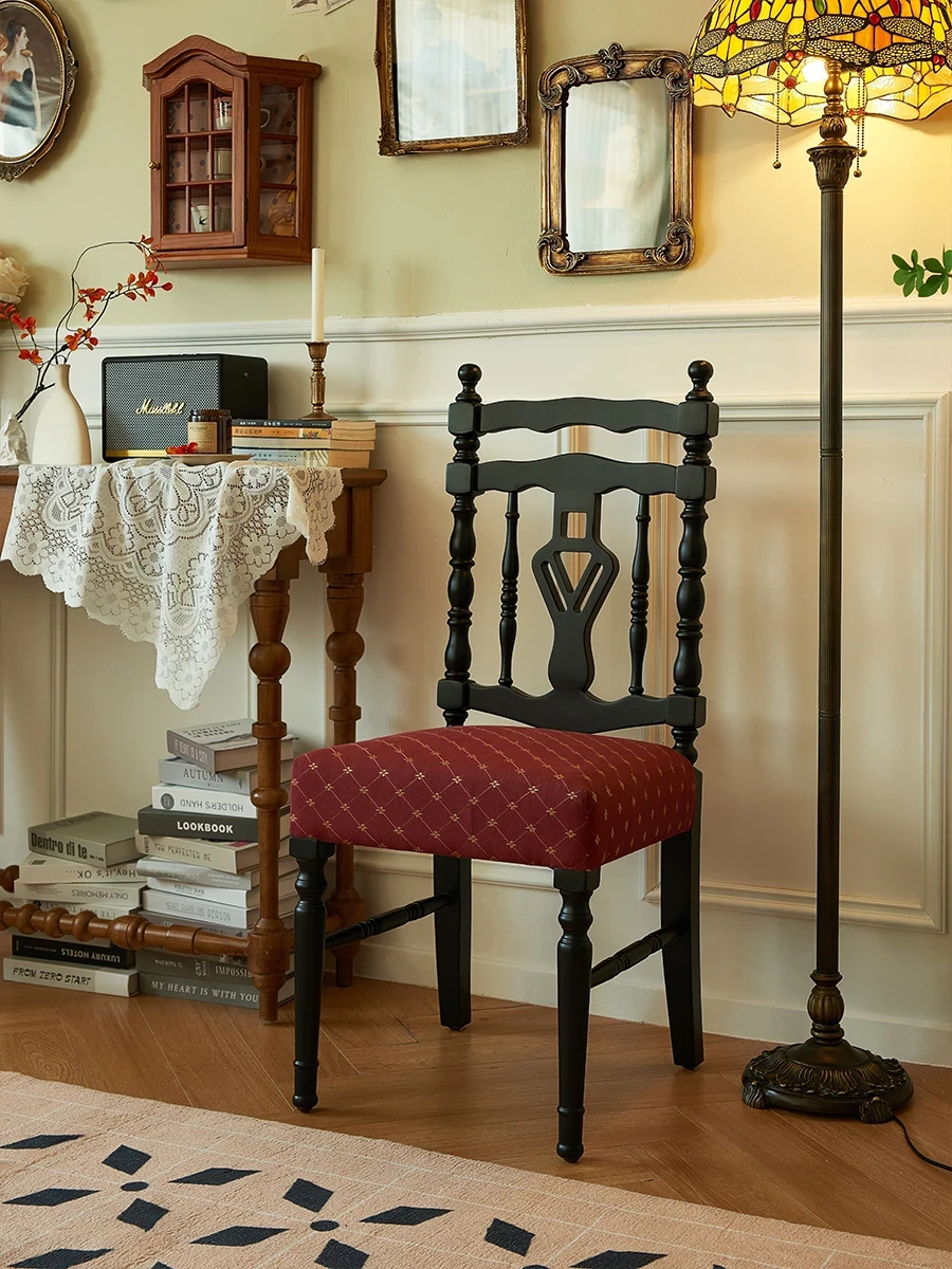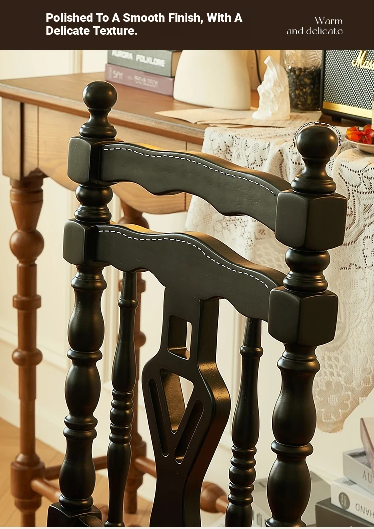 Black Knight Chair | French Vintage Solid Wood Dining Chair - Designer American Makeup Chair for Bedroom, Stylish Black Backrest Chair for Home Use