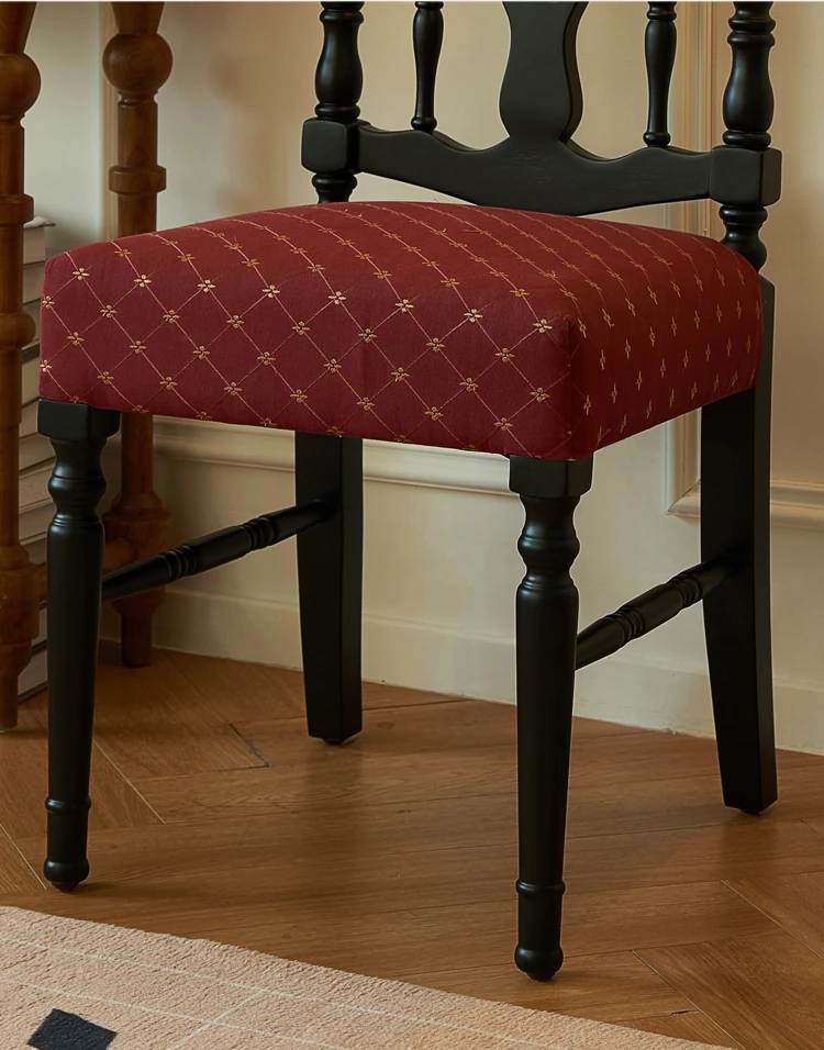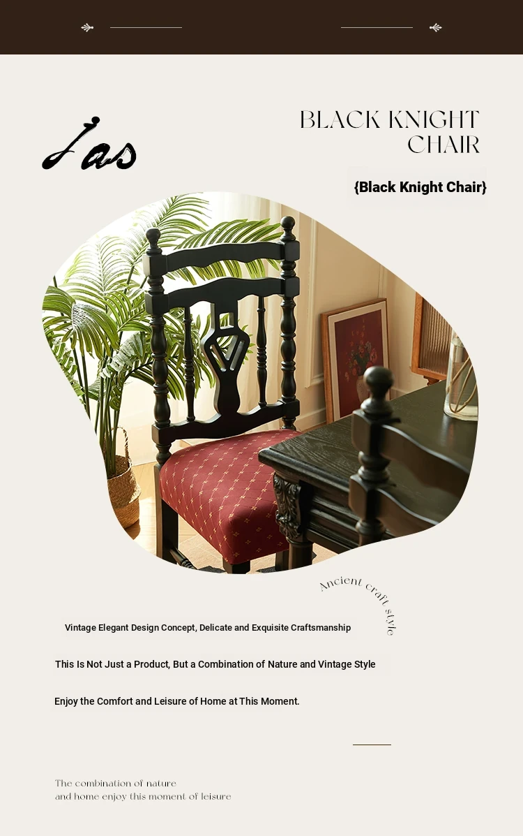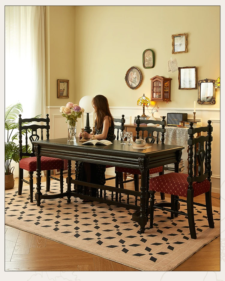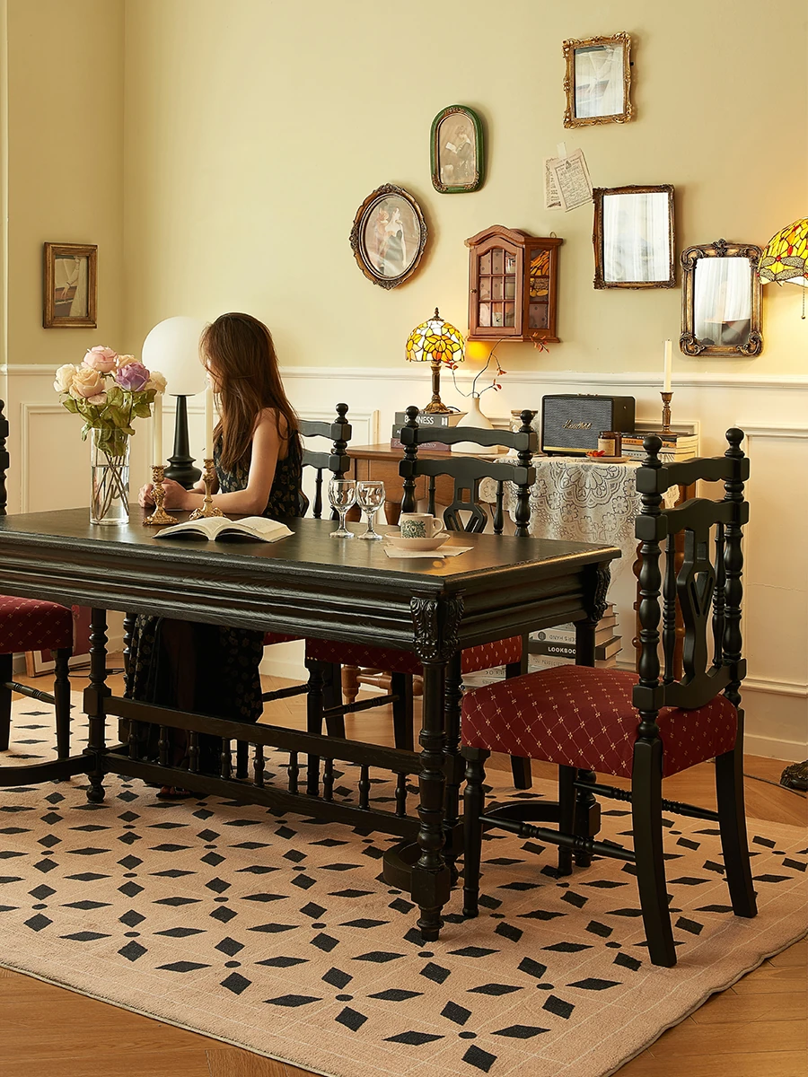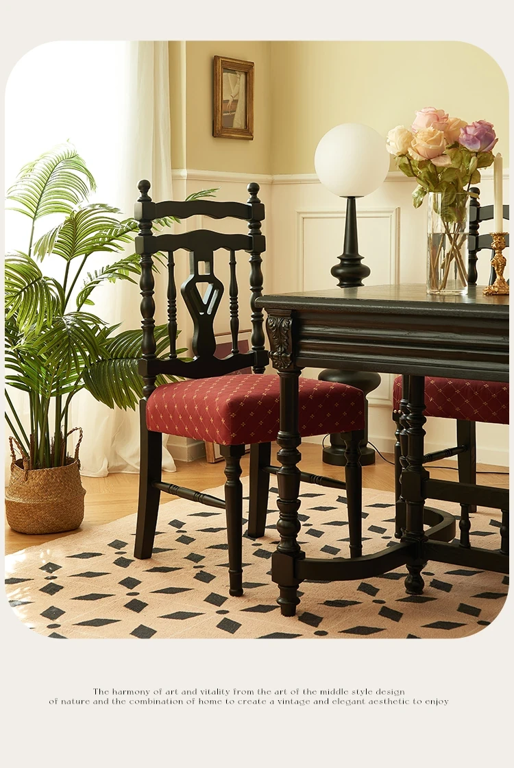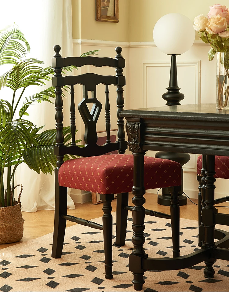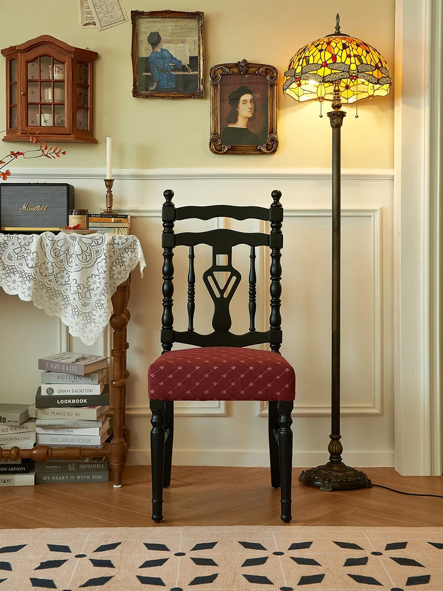 Black Knight Chair | French Vintage Solid Wood Dining Chair - Designer American Makeup Chair for Bedroom, Stylish Black Backrest Chair for Home Use