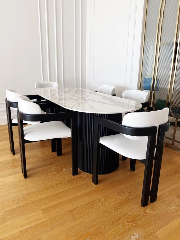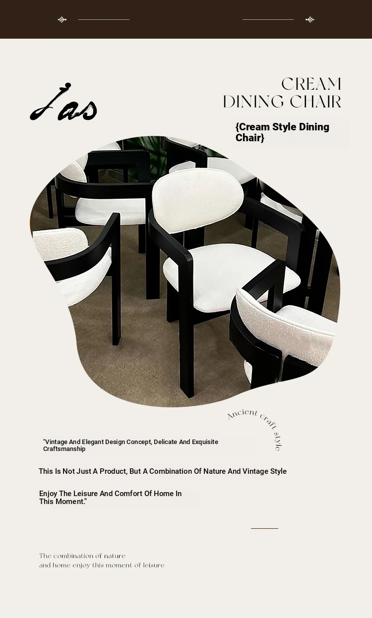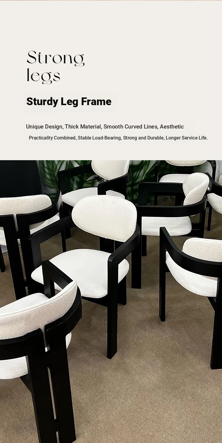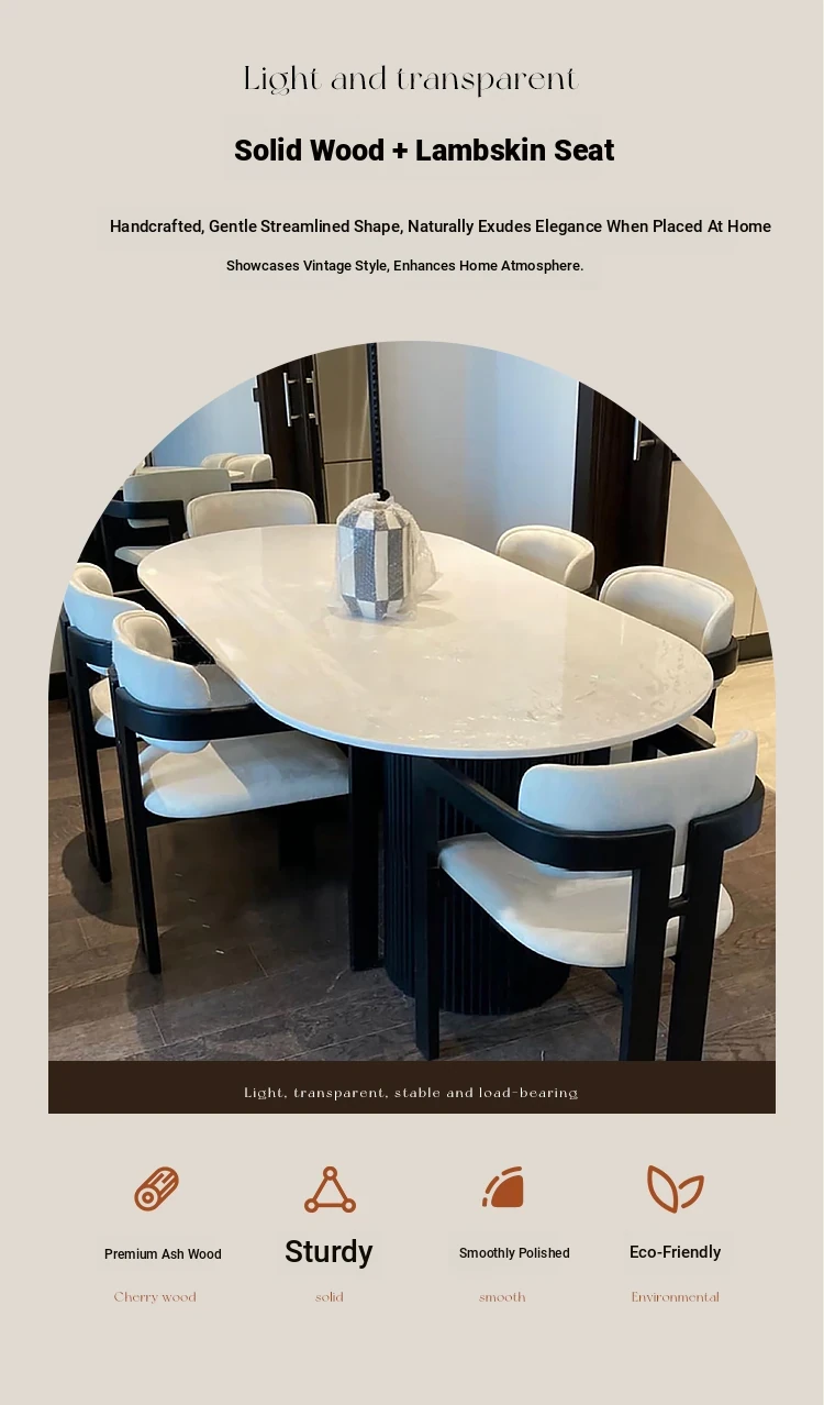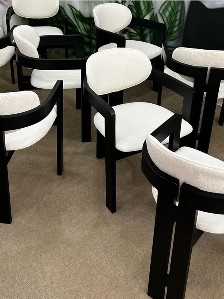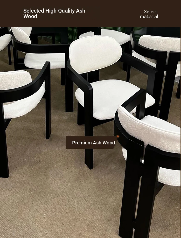 French Vintage Designer Curved Dining Chair - Cozy Lambswool, Minimalist Modern Solid Wood, Creative Cream Aesthetic Wabi-Sabi Seat
