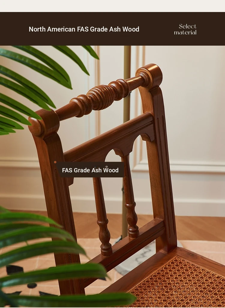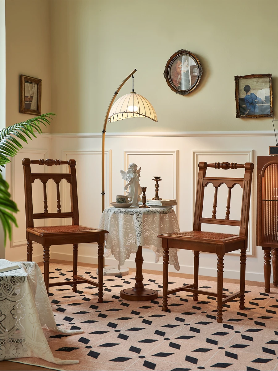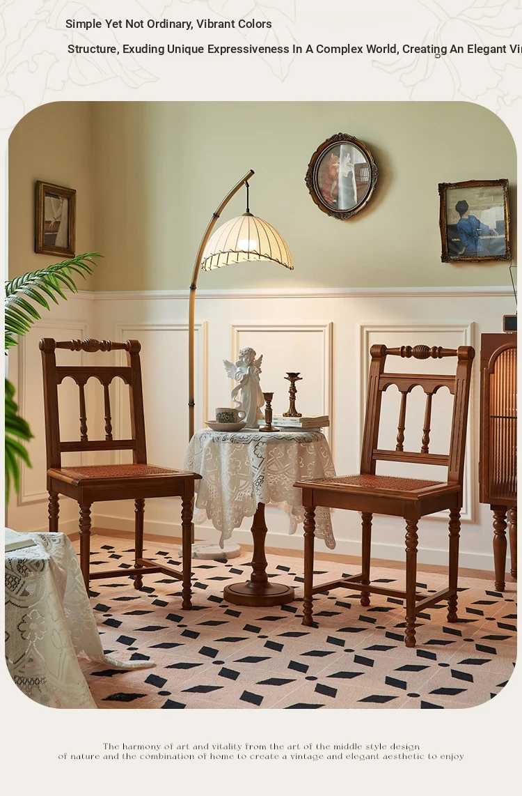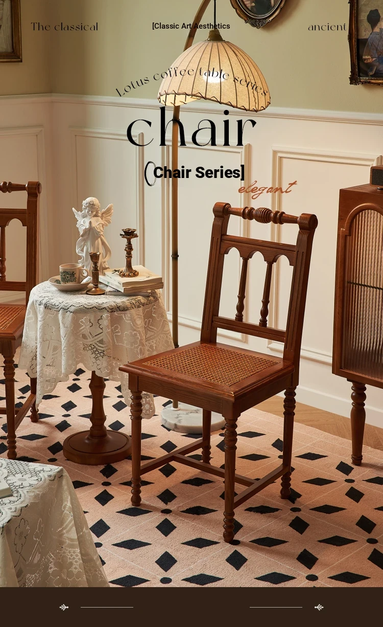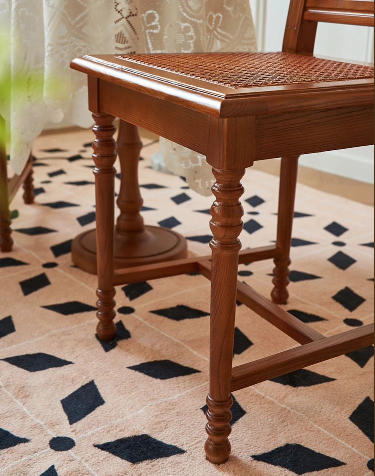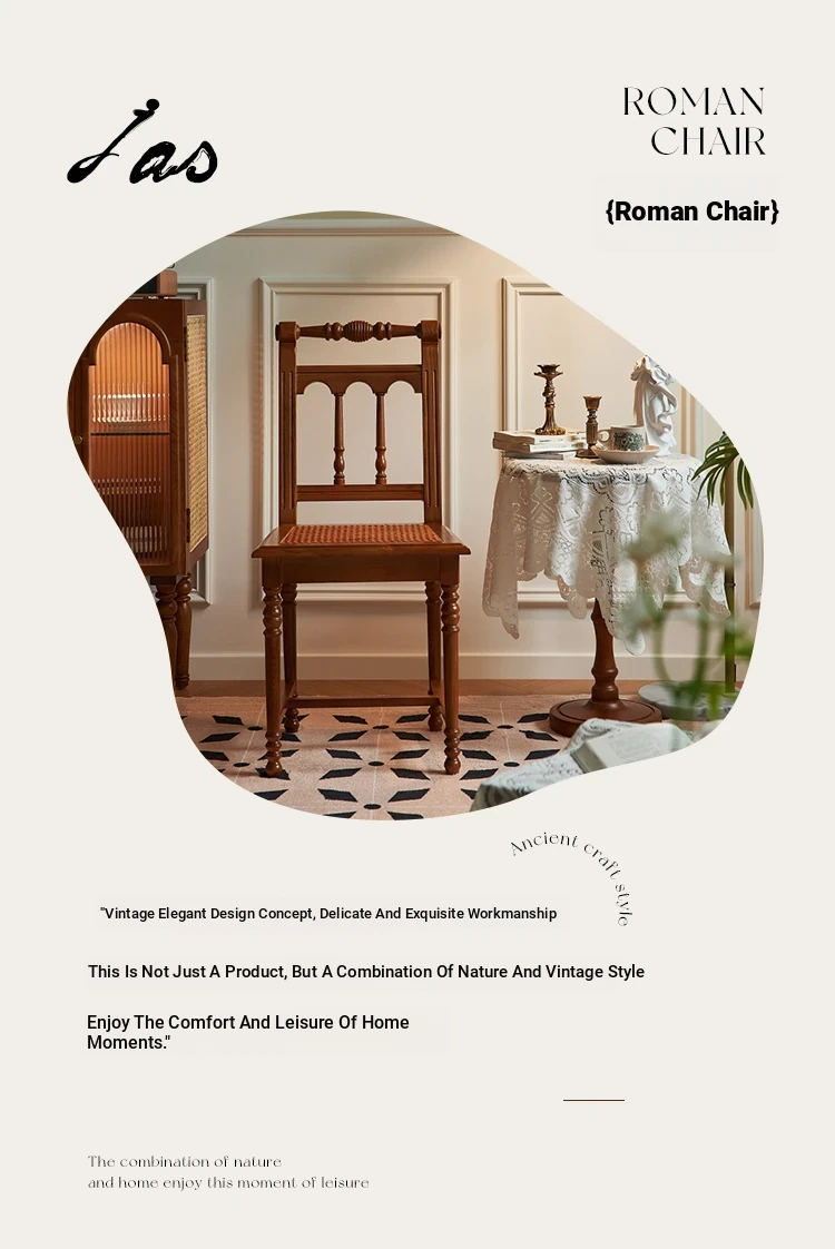 "French Vintage Solid Wood Roman Chair – Handcrafted Rattan Dining Chair for Home, Elegant Single Seat with Authentic Rattan Weaving, Perfect for Restaurants and Cozy Dining Spaces"