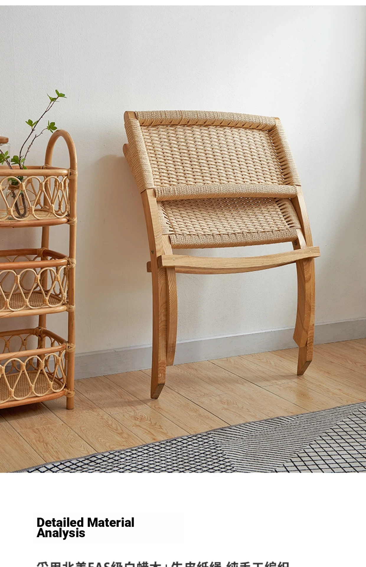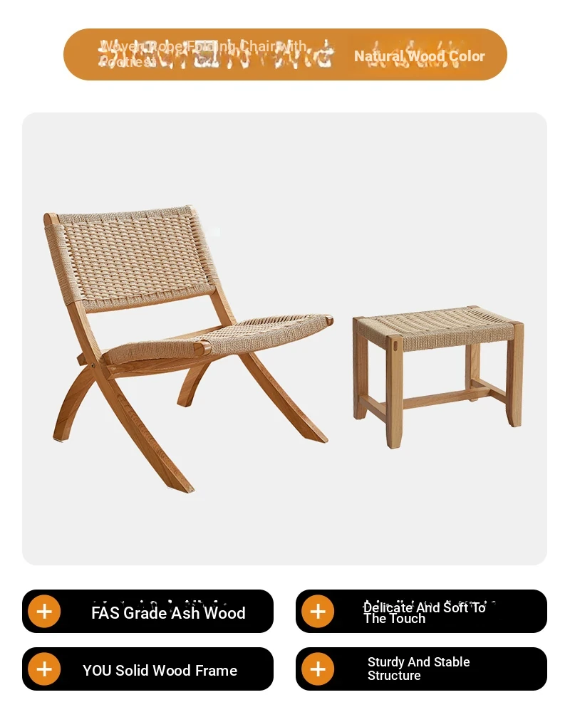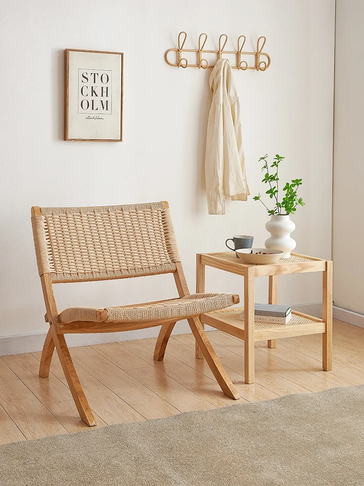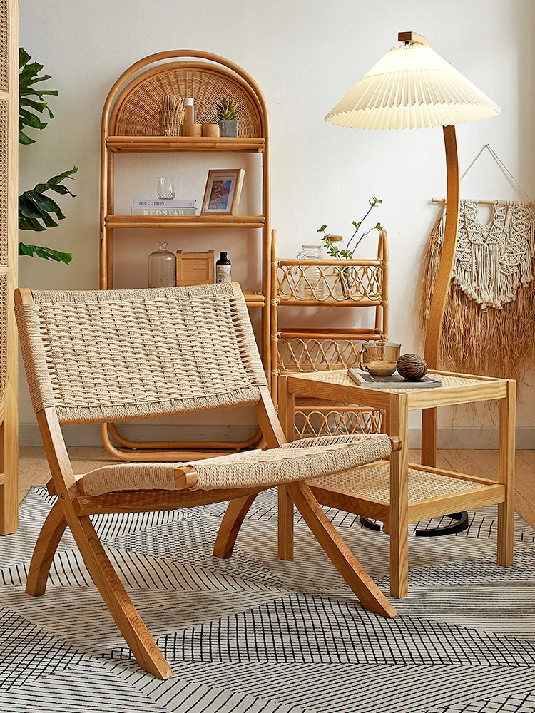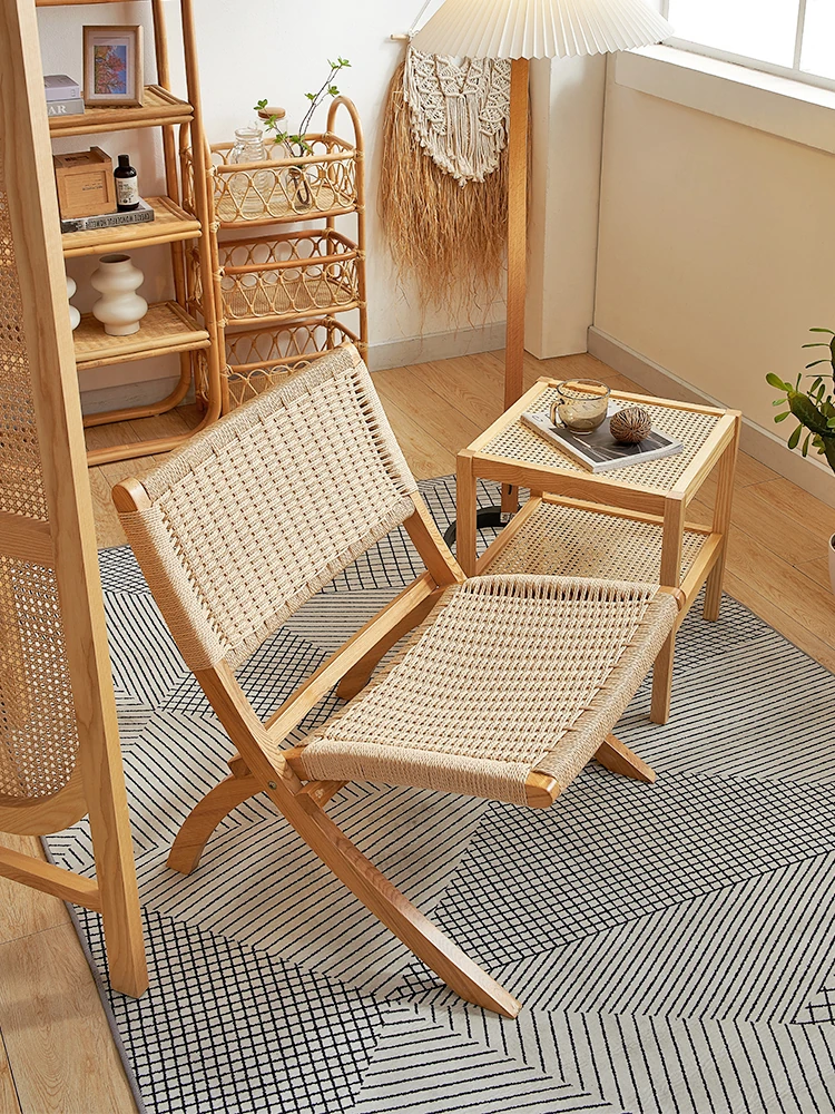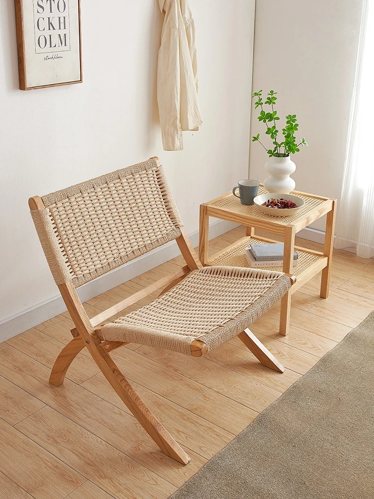 Nordic Solid Wood Rattan Woven Vintage Folding Single Sofa Chair - Perfect for Small Spaces, Balcony Relaxation, and Cozy Living Rooms.