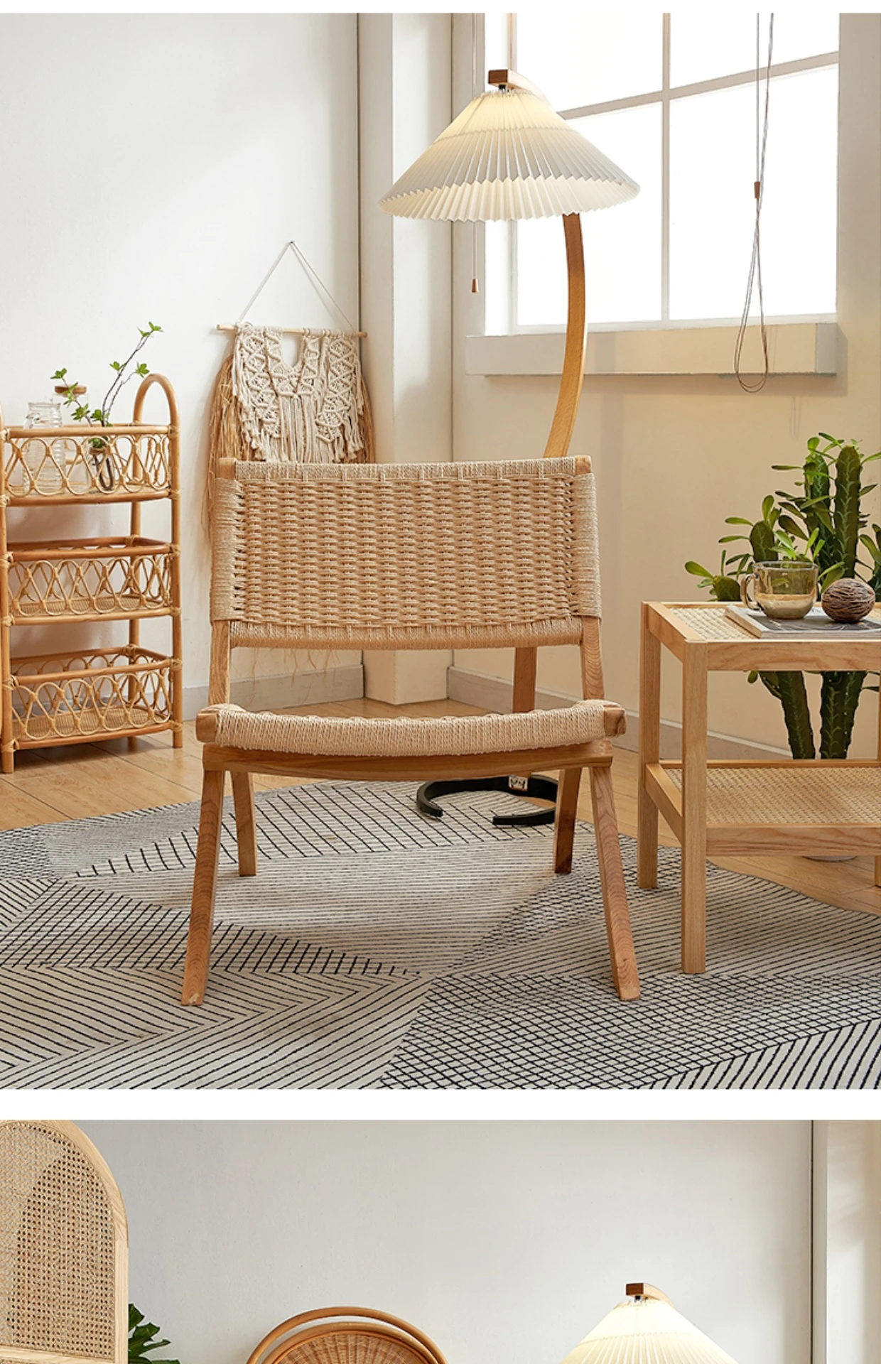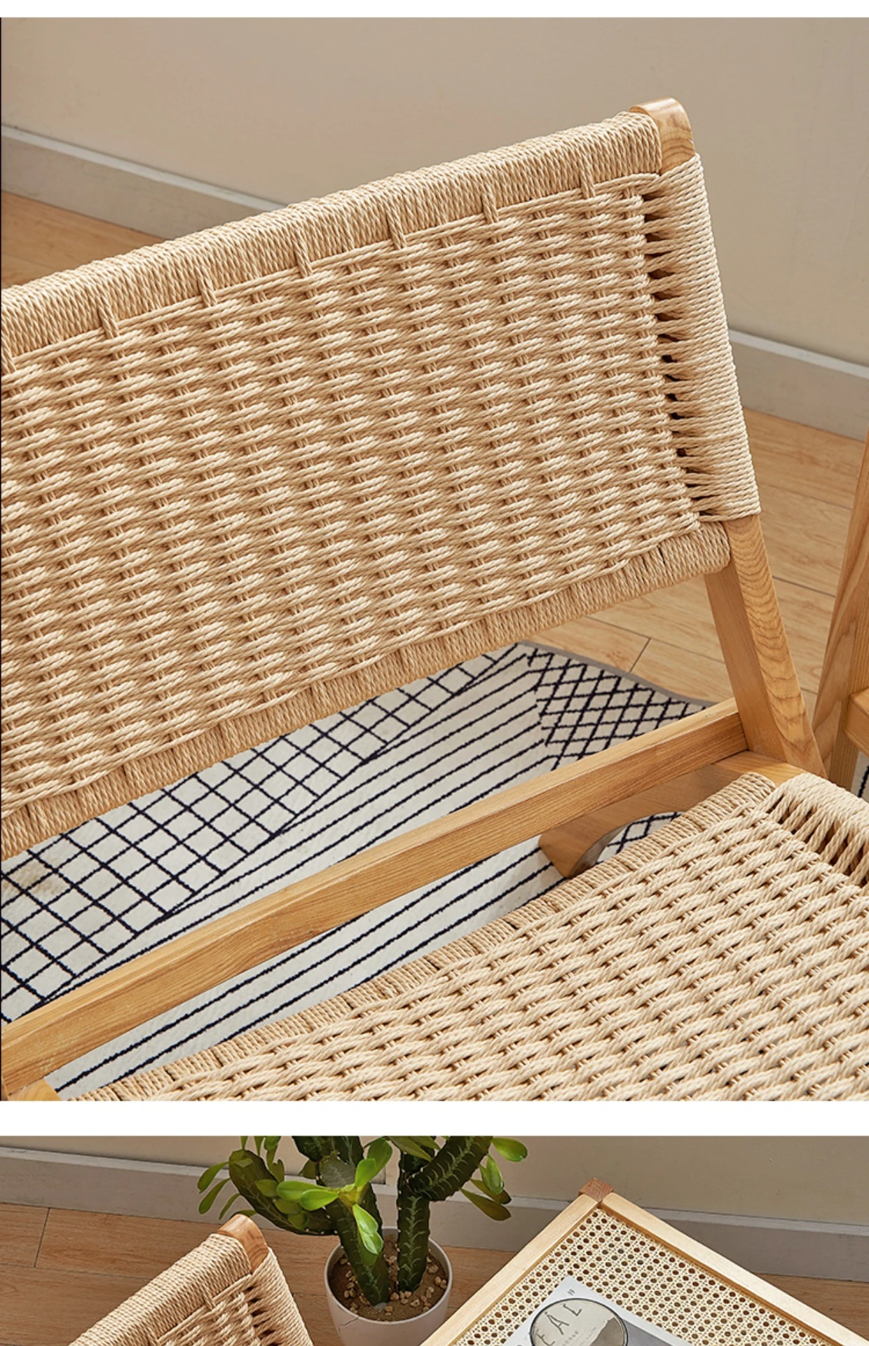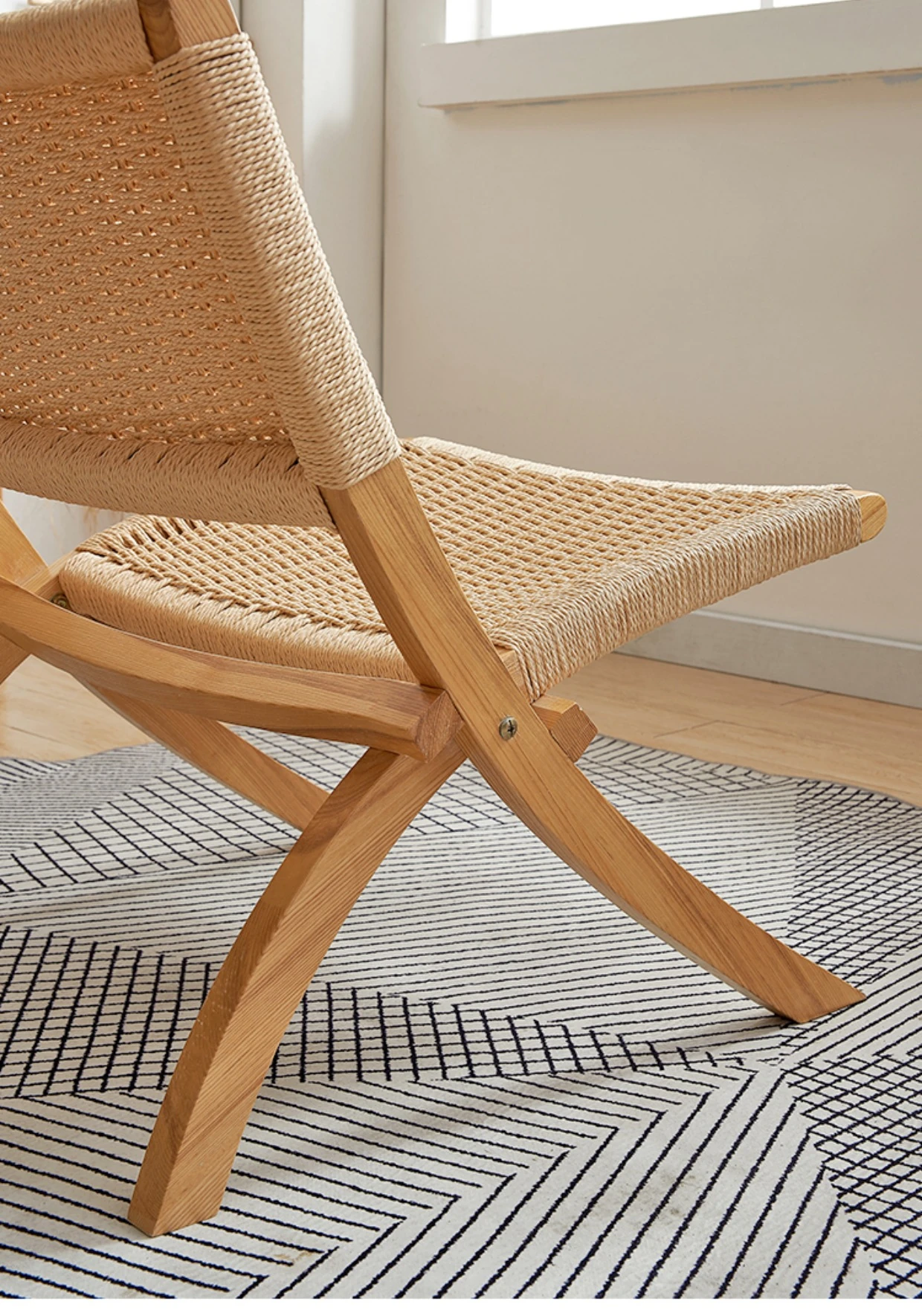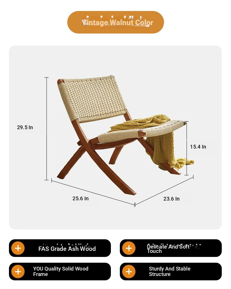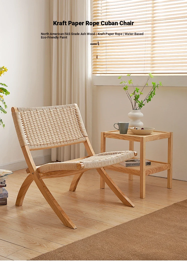 Nordic Solid Wood Rattan Woven Vintage Folding Single Sofa Chair - Perfect for Small Spaces, Balcony Relaxation, and Cozy Living Rooms.