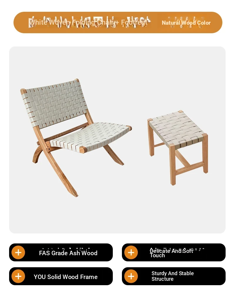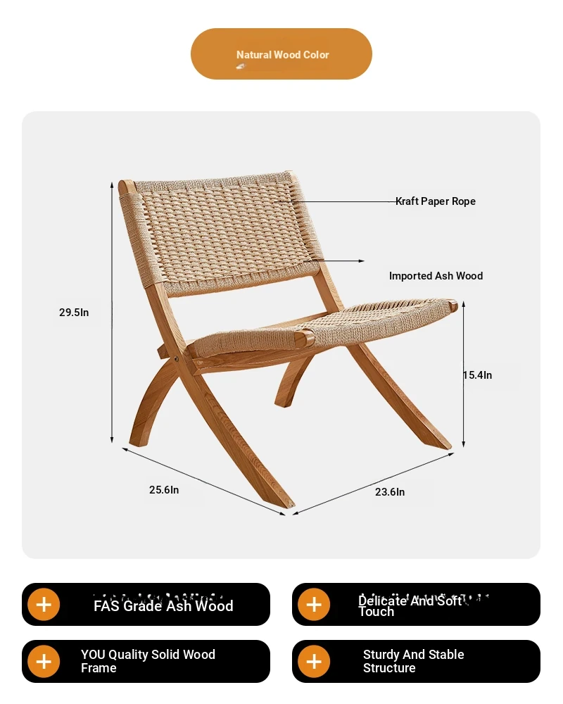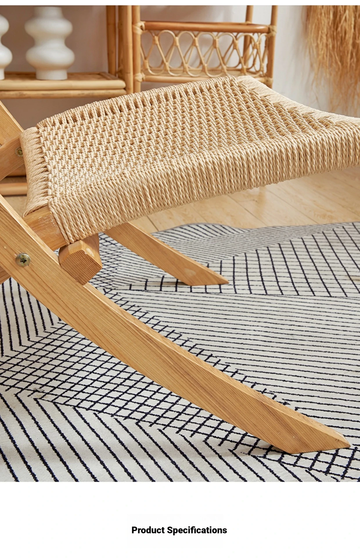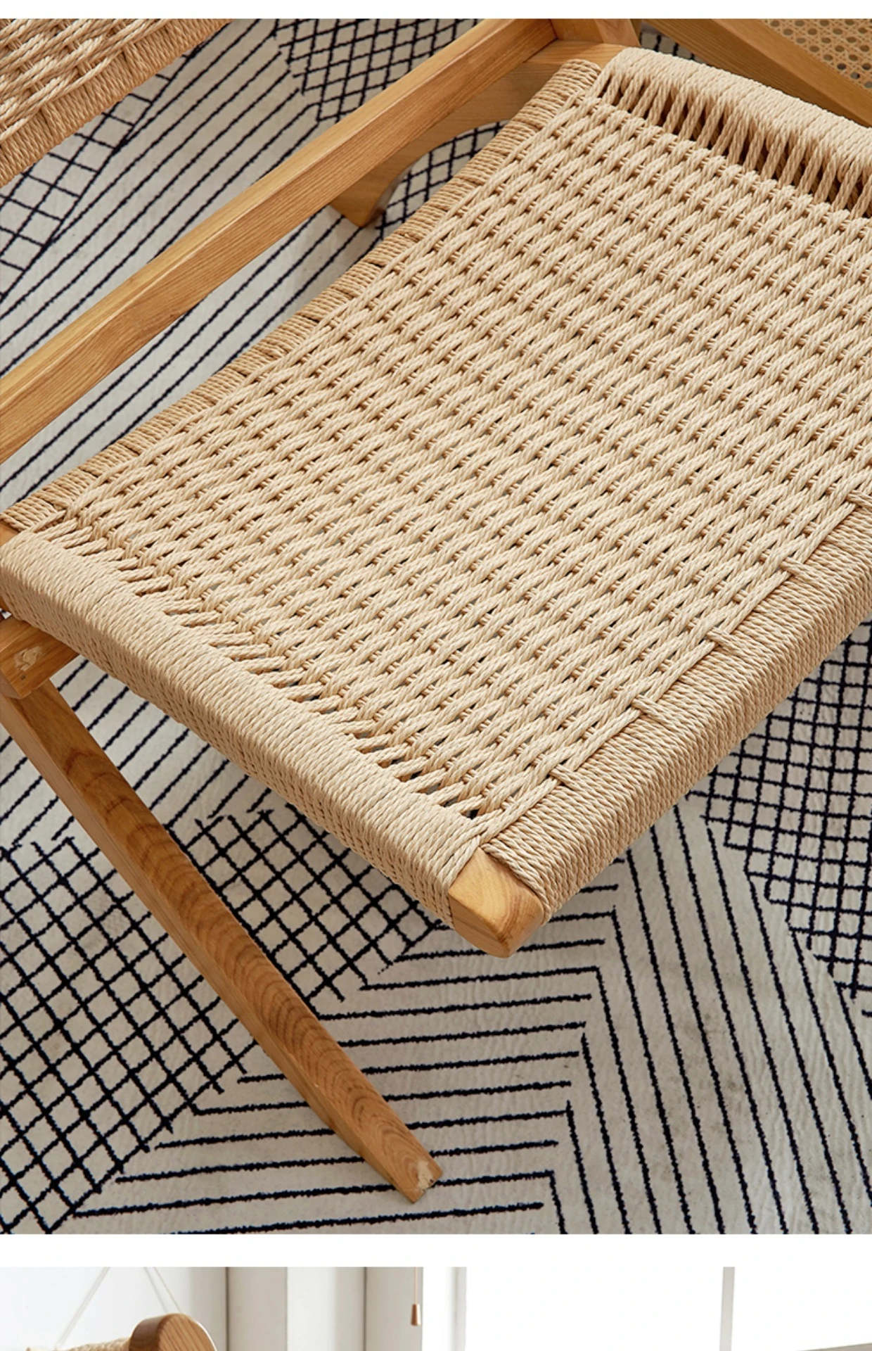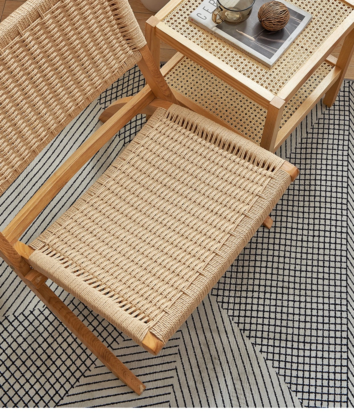 Nordic Solid Wood Rattan Woven Vintage Folding Single Sofa Chair - Perfect for Small Spaces, Balcony Relaxation, and Cozy Living Rooms.