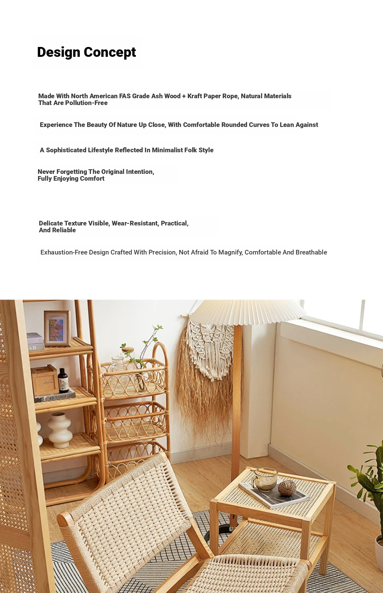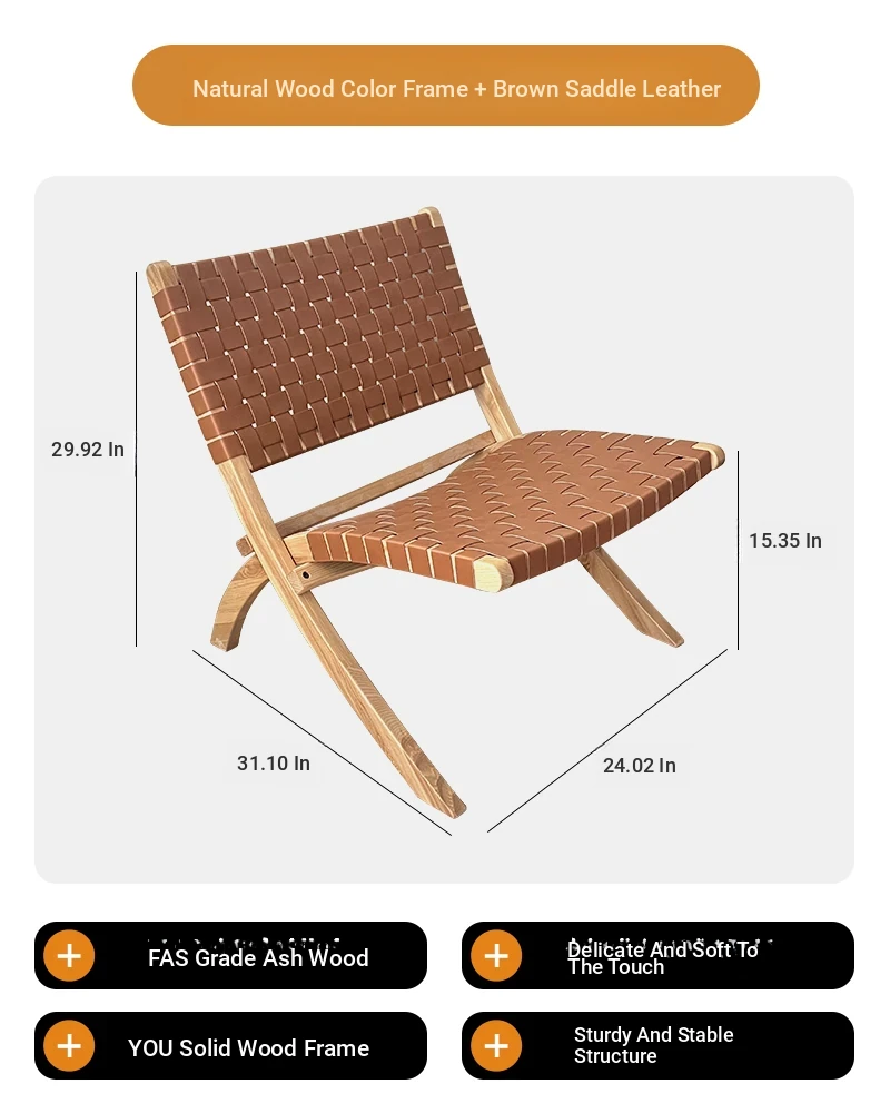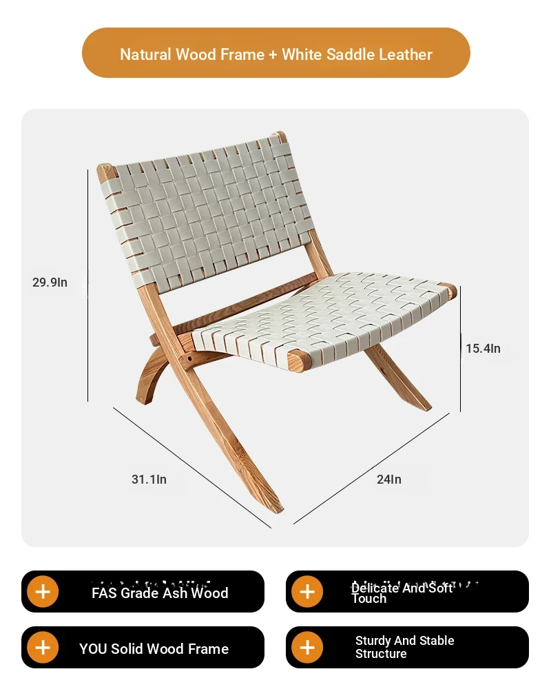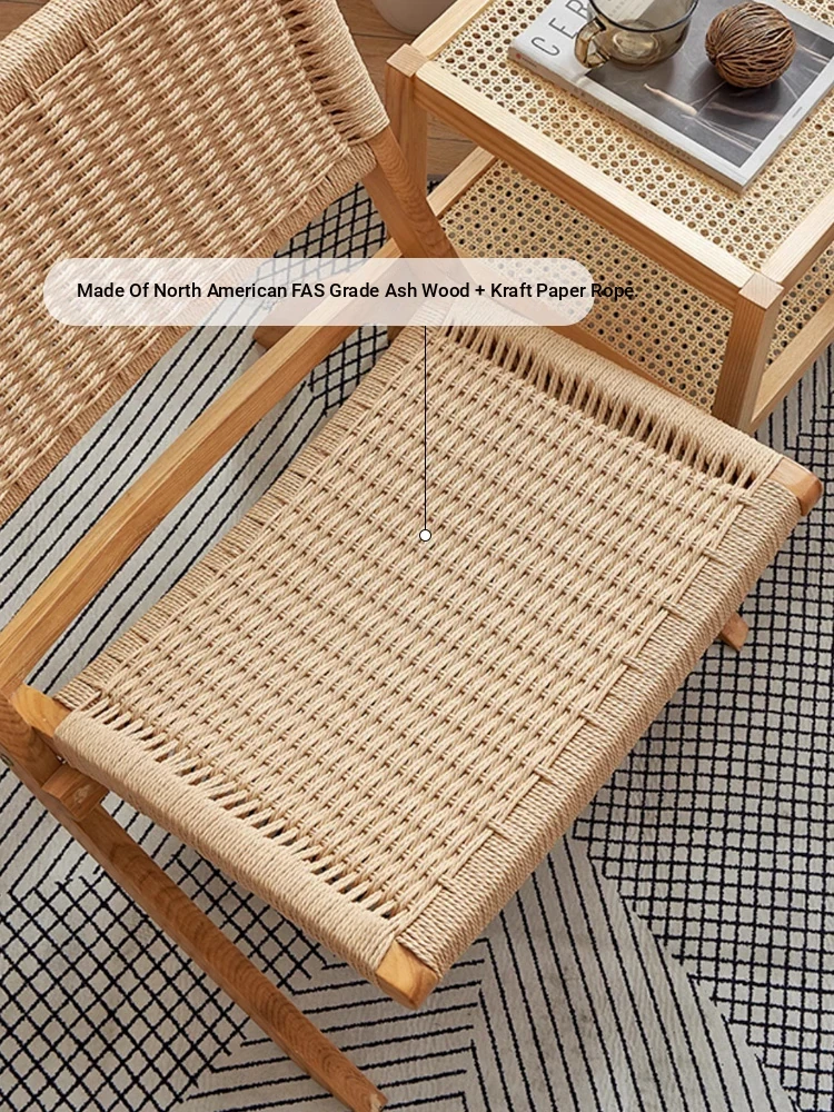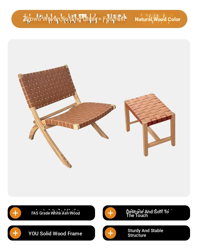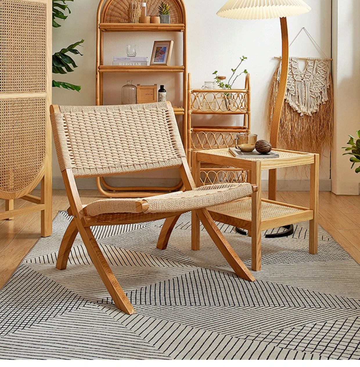 Nordic Solid Wood Rattan Woven Vintage Folding Single Sofa Chair - Perfect for Small Spaces, Balcony Relaxation, and Cozy Living Rooms.