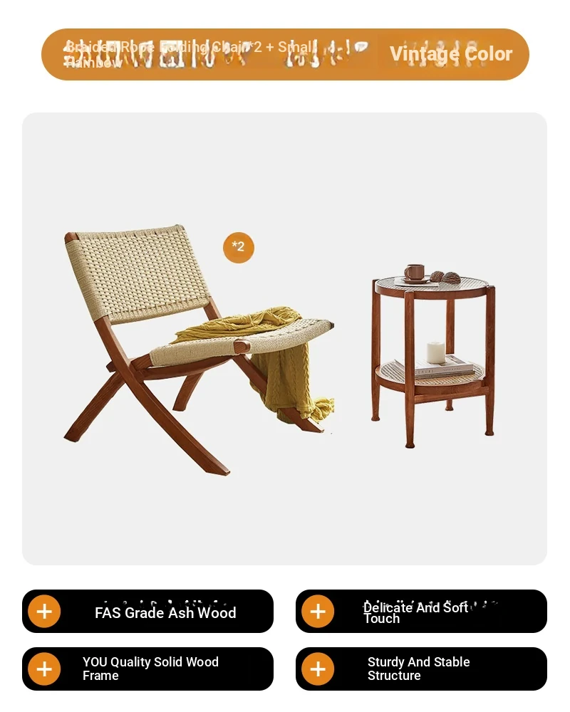 Rope-braided folding chair medium antique 2 + small Changhong medium antique 1