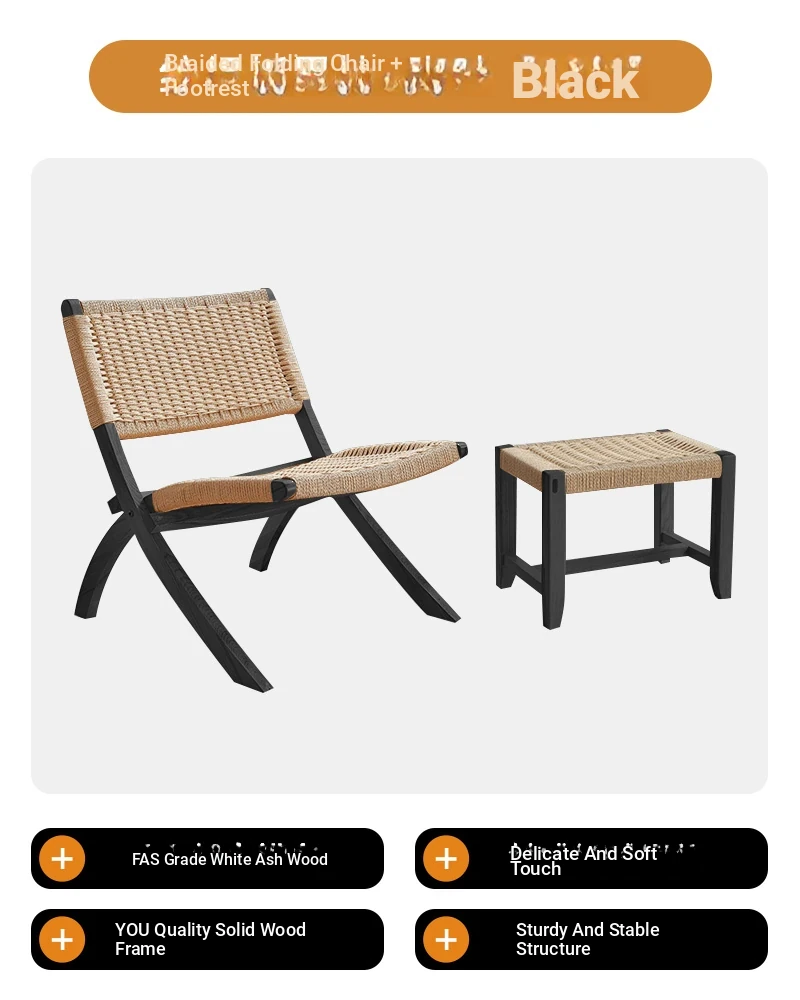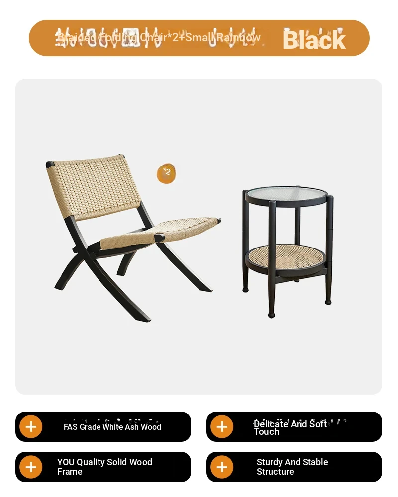 Rope-braided folding chair Black 2 + small Changhong black 1