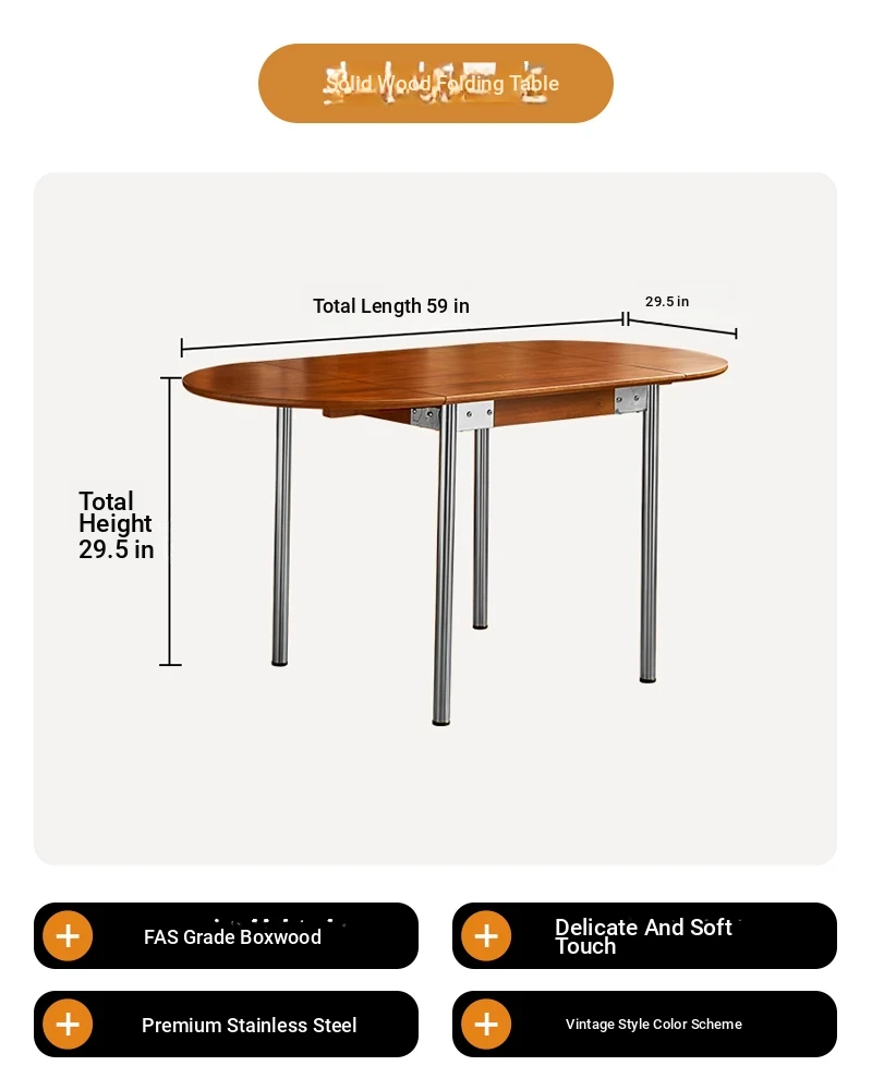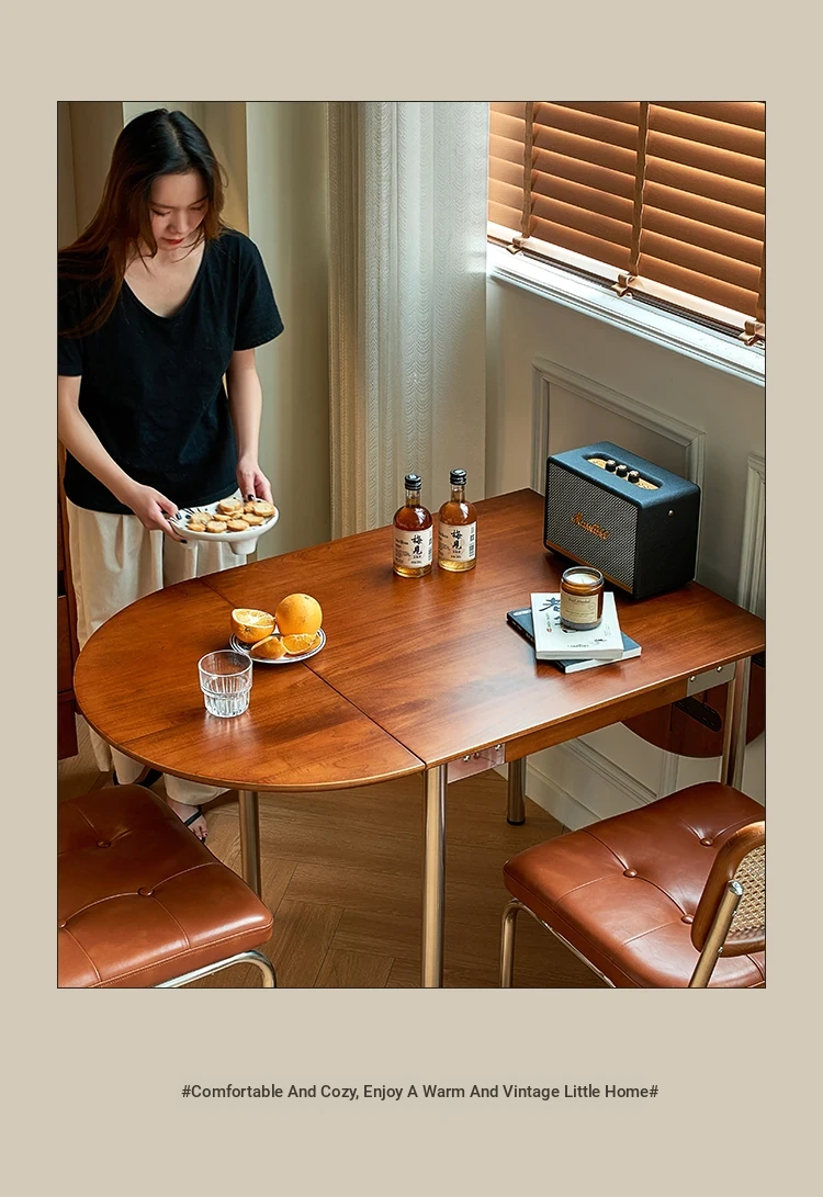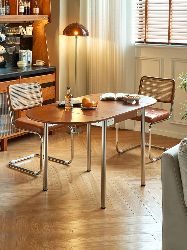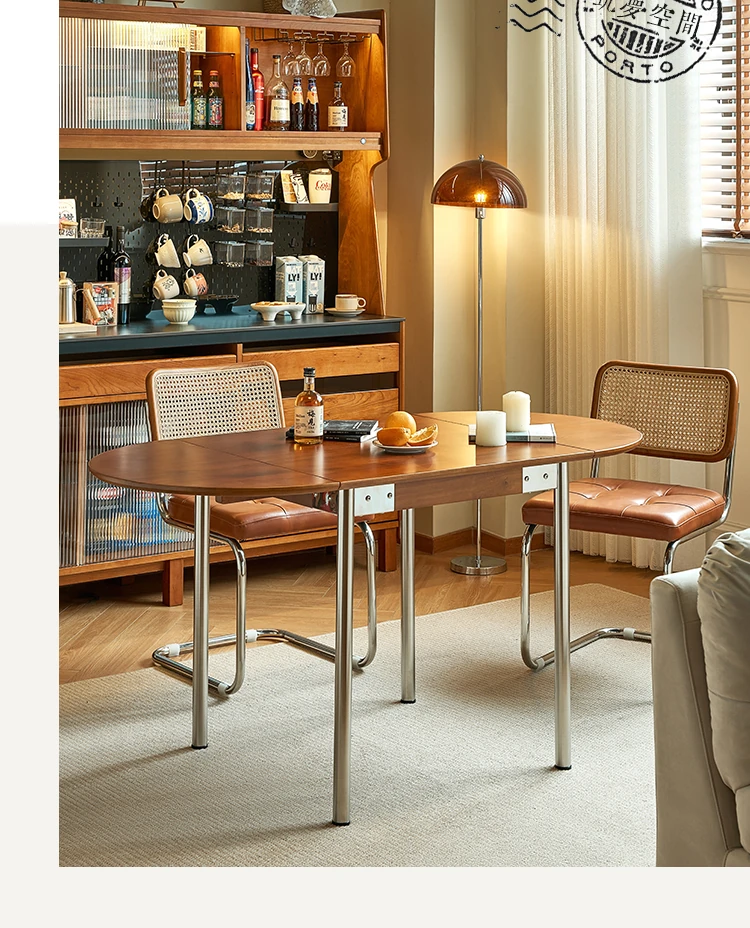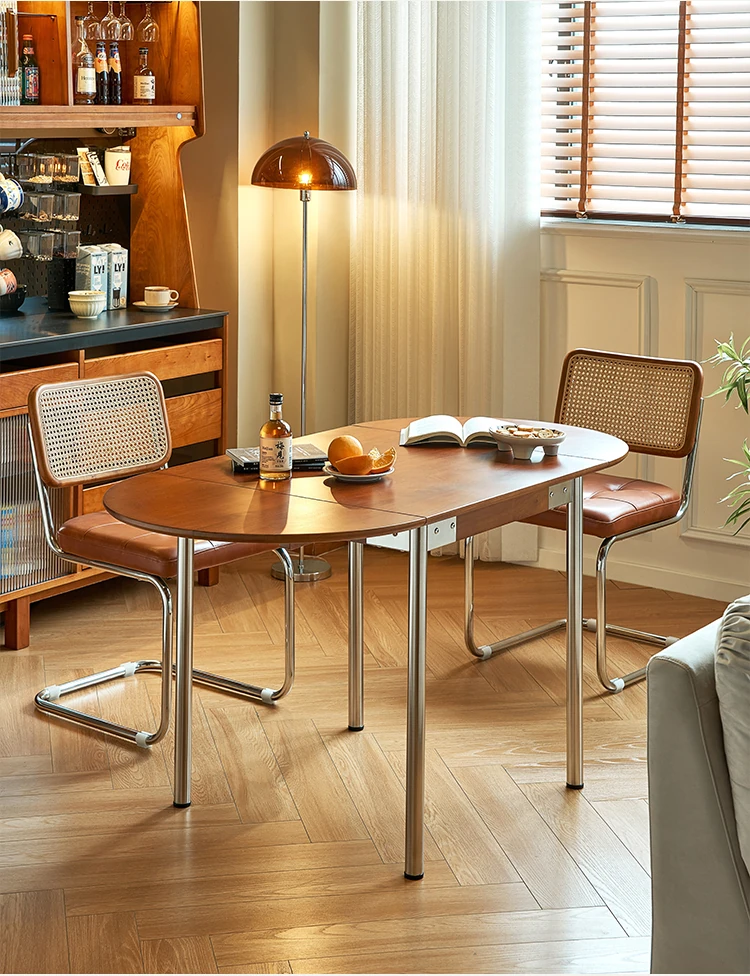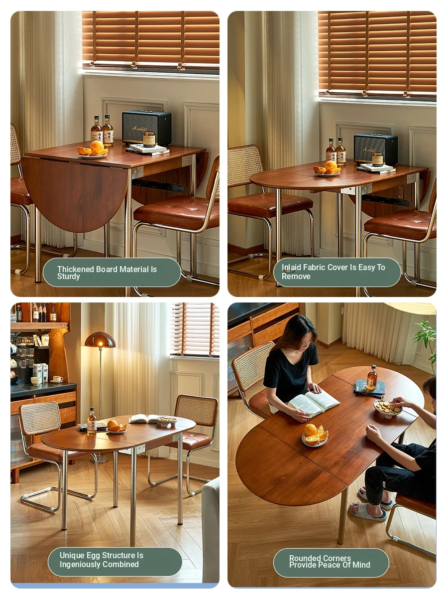 Nordic Vintage Oval Folding Dining Table - Solid Wood Expandable Square Table with Simple Chair Set for Small Spaces
