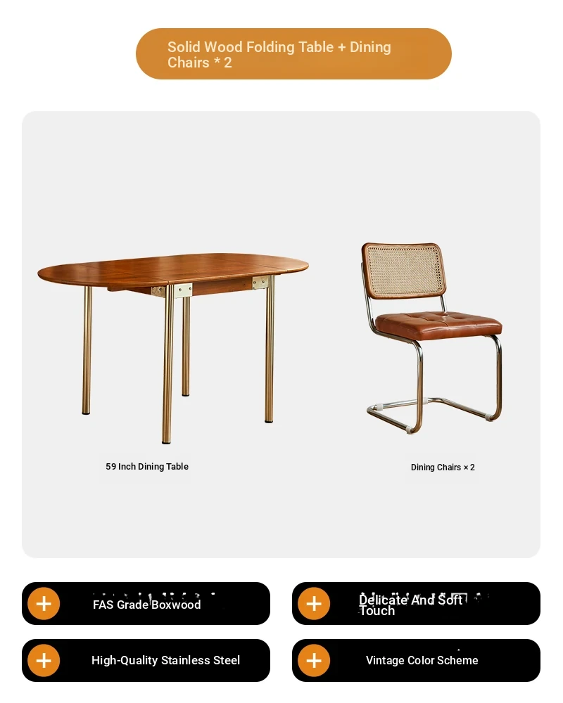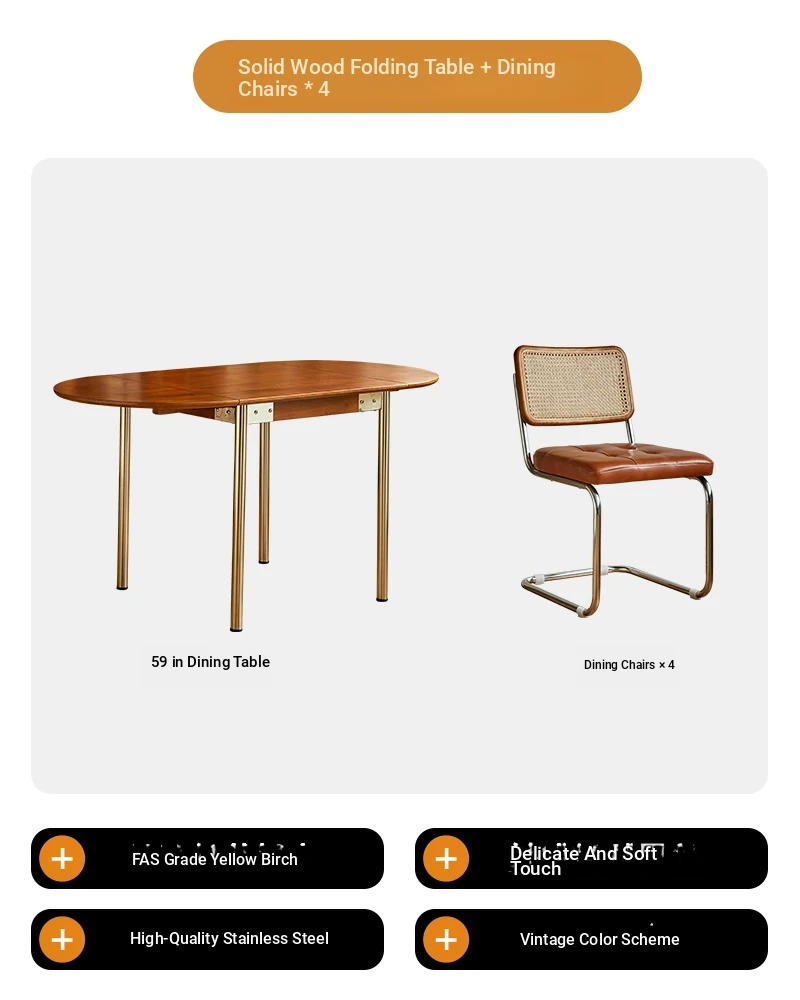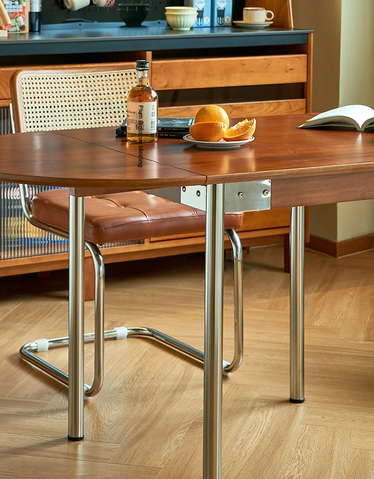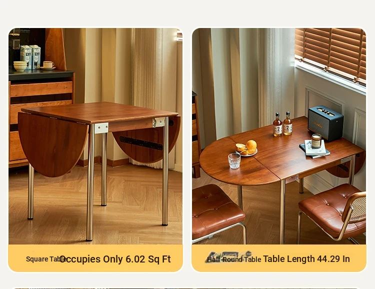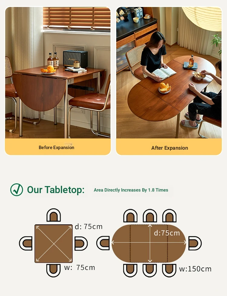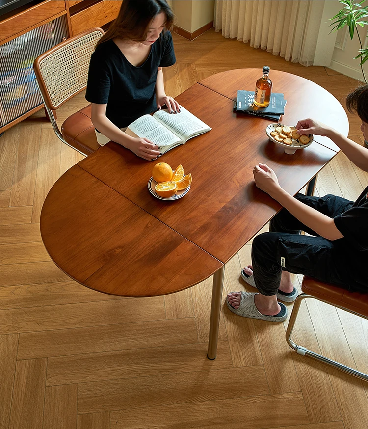 Nordic Vintage Oval Folding Dining Table - Solid Wood Expandable Square Table with Simple Chair Set for Small Spaces