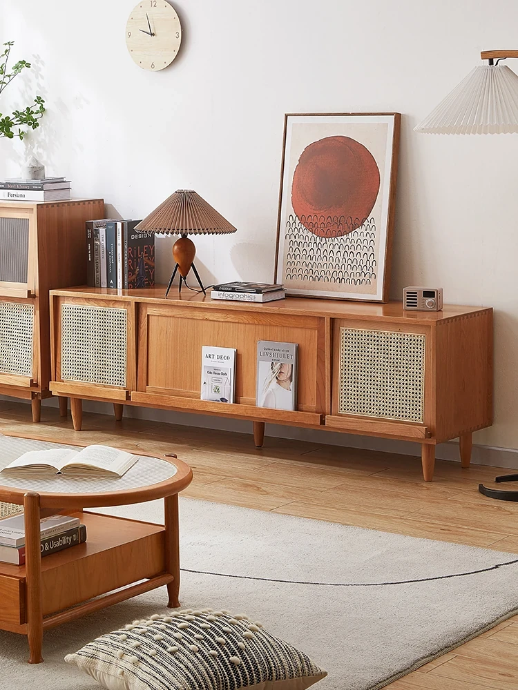 Scandinavian Solid Wood Coffee Table and TV Cabinet Combo - Cherry Wood Storage Unit for Small Spaces, Modern Minimalist Design
