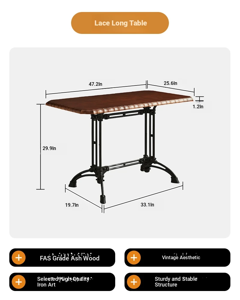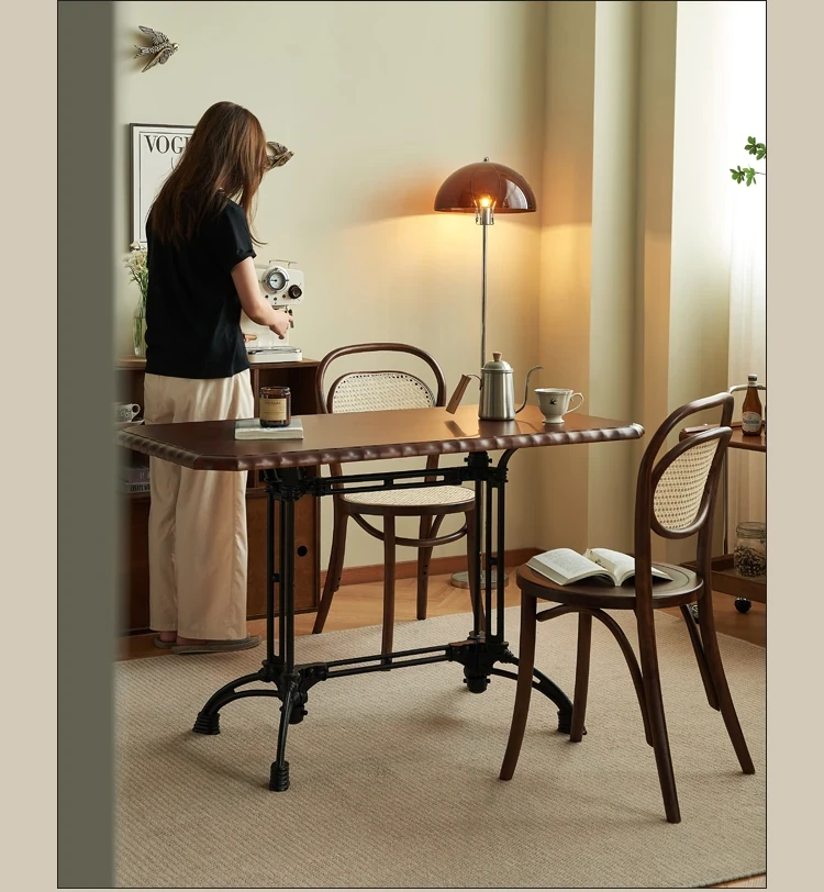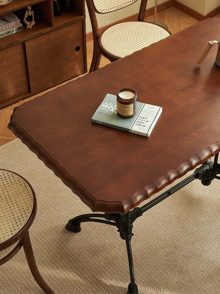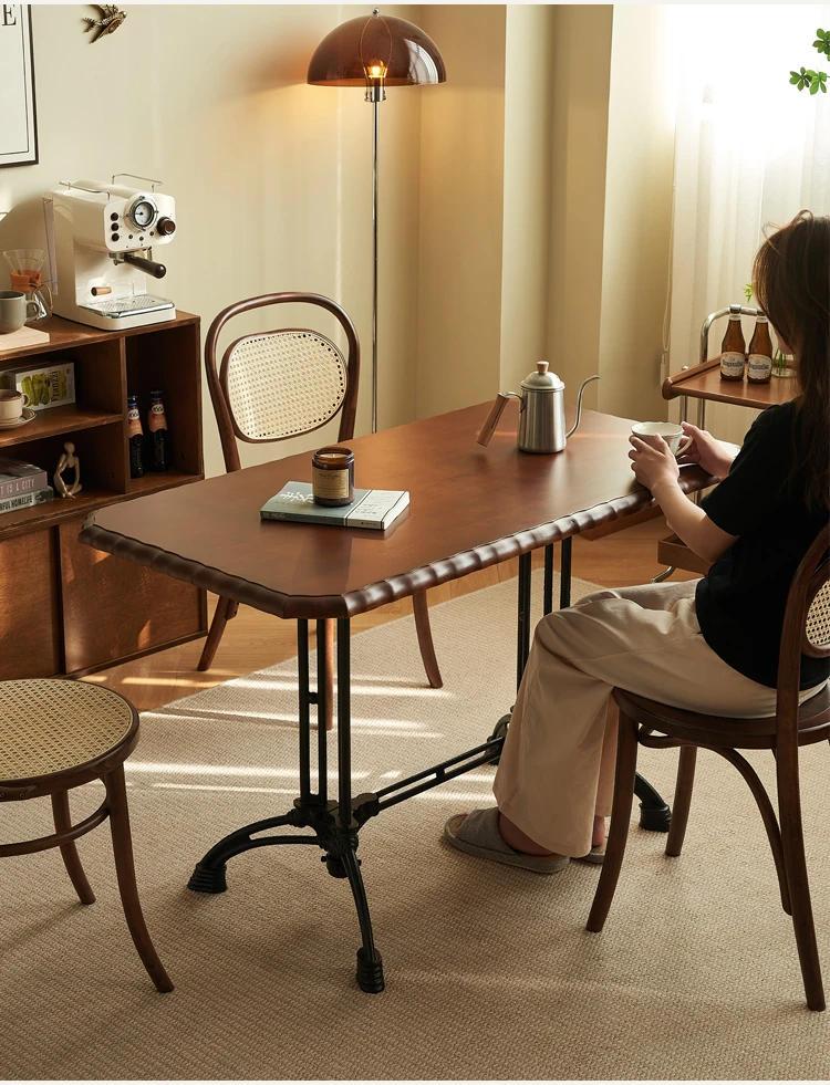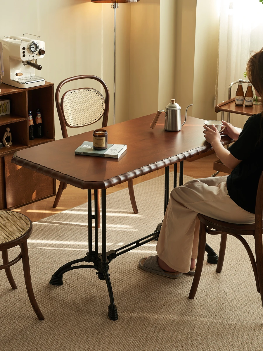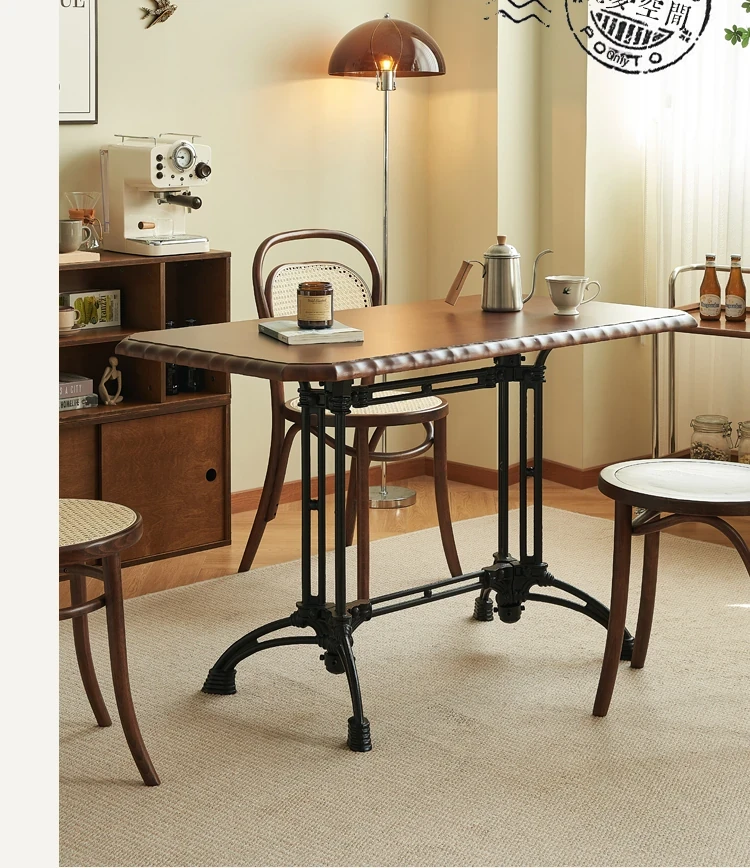 Vintage French Solid Wood Rectangular Dining Table - Perfect for Cozy Living Rooms, Home Dining, Cafés, and Small Spaces - Stylish and Functional Design for Modern Homes