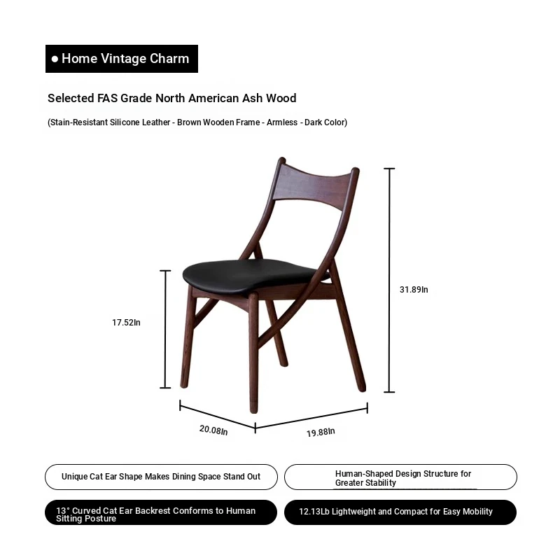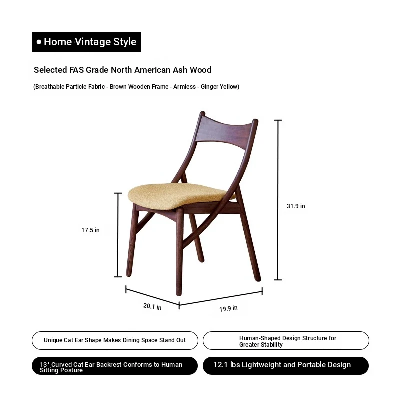 Vintage Solid Wood Dining Chair for Small Spaces - Designer Single Coffee Chair with Backrest, Perfect for Home Use and Cozy Dining Areas