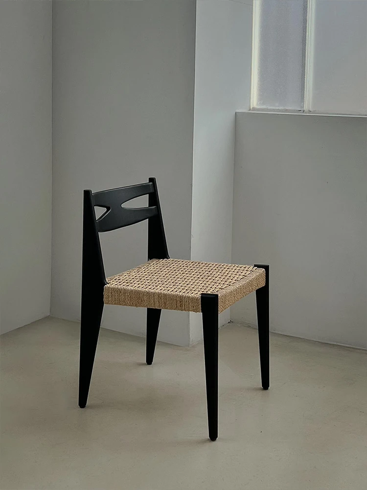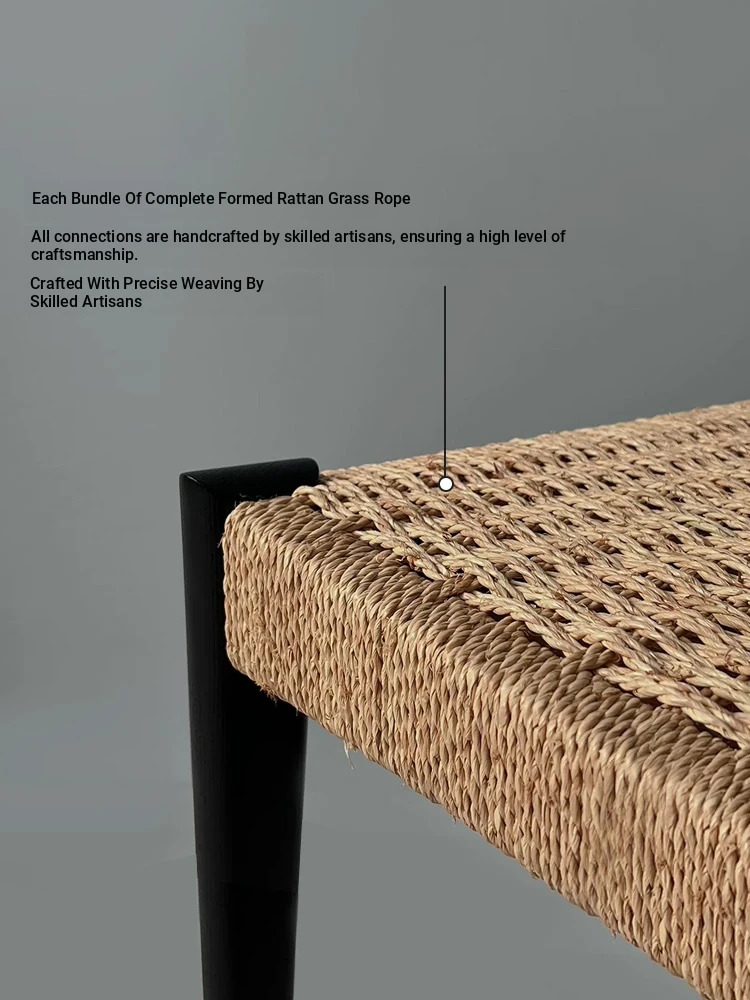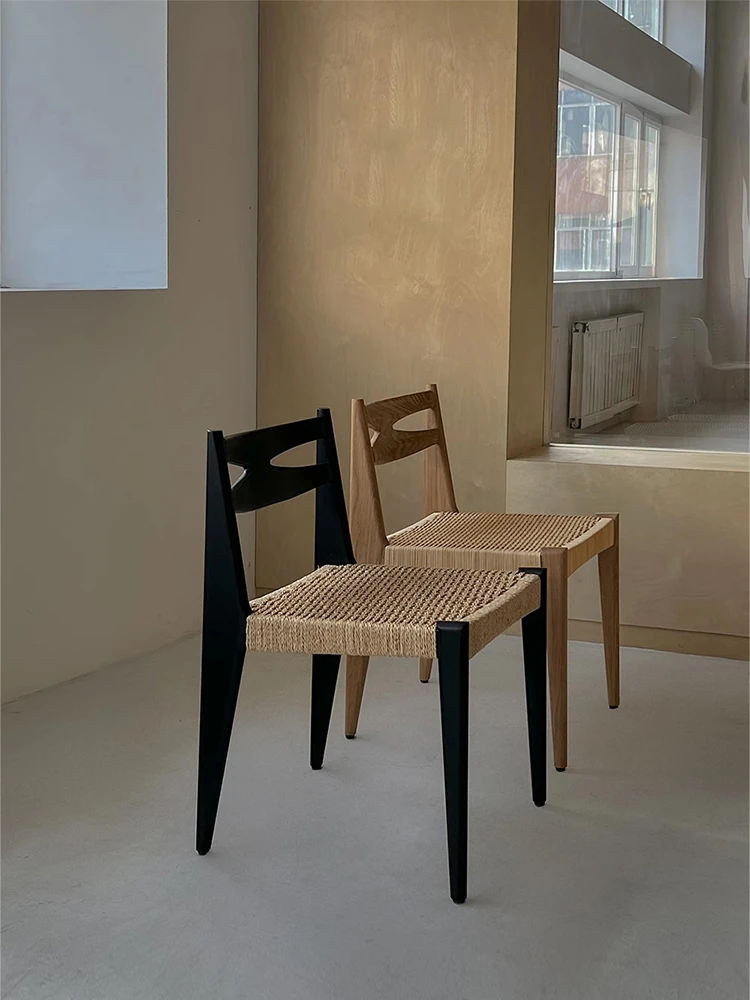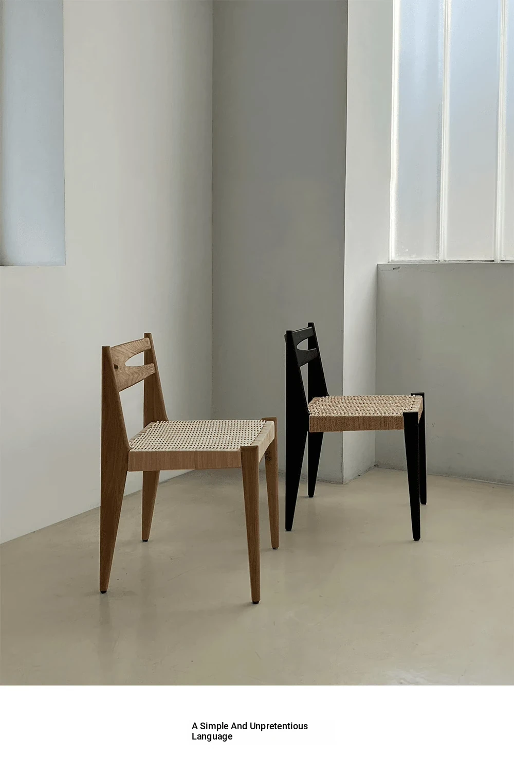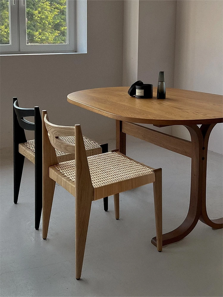 Vintage Woven Dining Chair - Japanese Solid Wood & French Retro Style, Handcrafted Rattan Chair for Home, Perfect for Dining Rooms & Designers