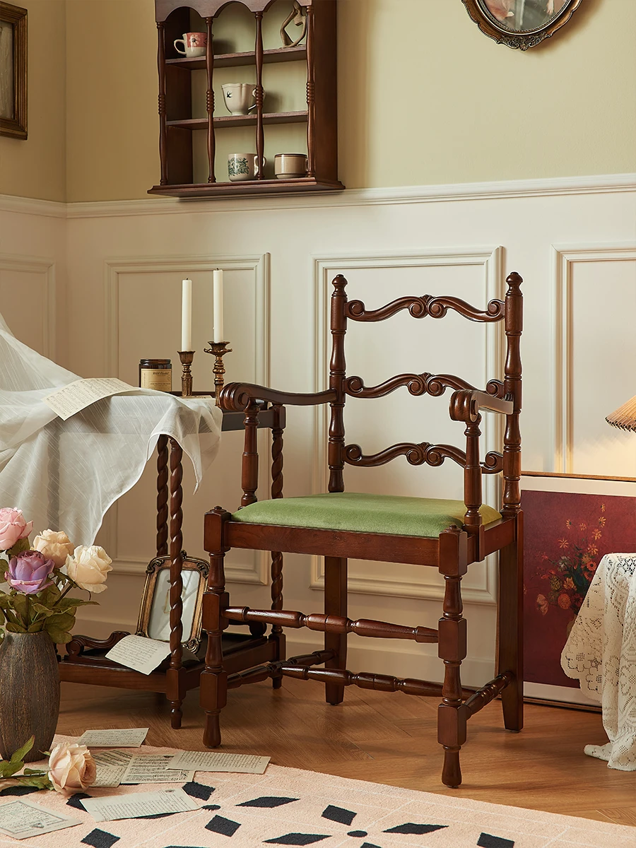 Elegant French Vintage Solid Wood Dining Chair - Premium Restaurant & Home Balcony Leisure Armchair with Backrest for Tea Table