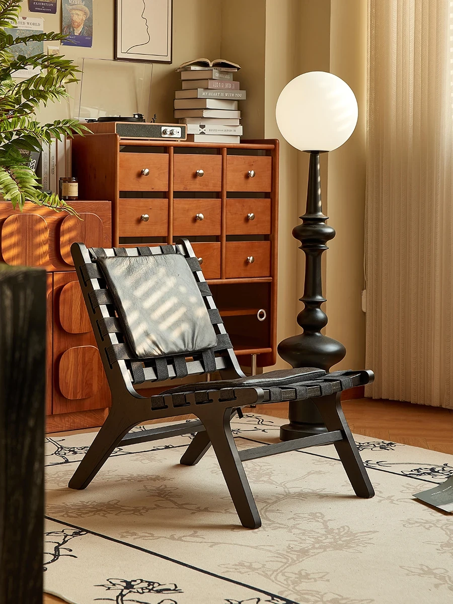 Designer Vintage Solid Wood Armchair for Small Spaces - Retro Single Leisure Chair for Living Room, Perfect for Reading and Relaxing at Home