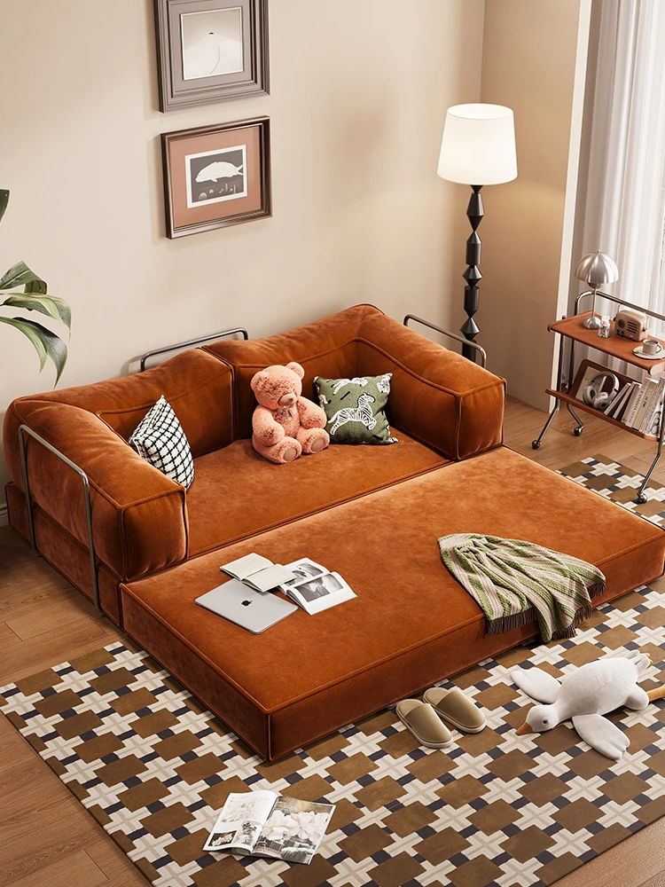 Retro Fabric Sofa Bed for Small Spaces - Foldable, Washable, and Modular Design for Living Room and Bedroom - Perfect for Couples or Small Families, Seats Up to Three!