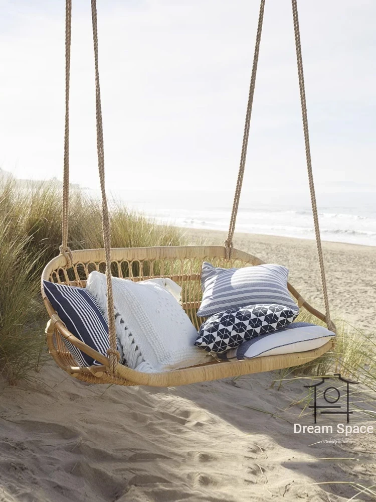 Dream Space Handmade Rattan Double Swing Chair - Indoor and Outdoor Hanging Basket for Home, Balcony, and Garden - Perfect for Relaxation and Cozy Moments