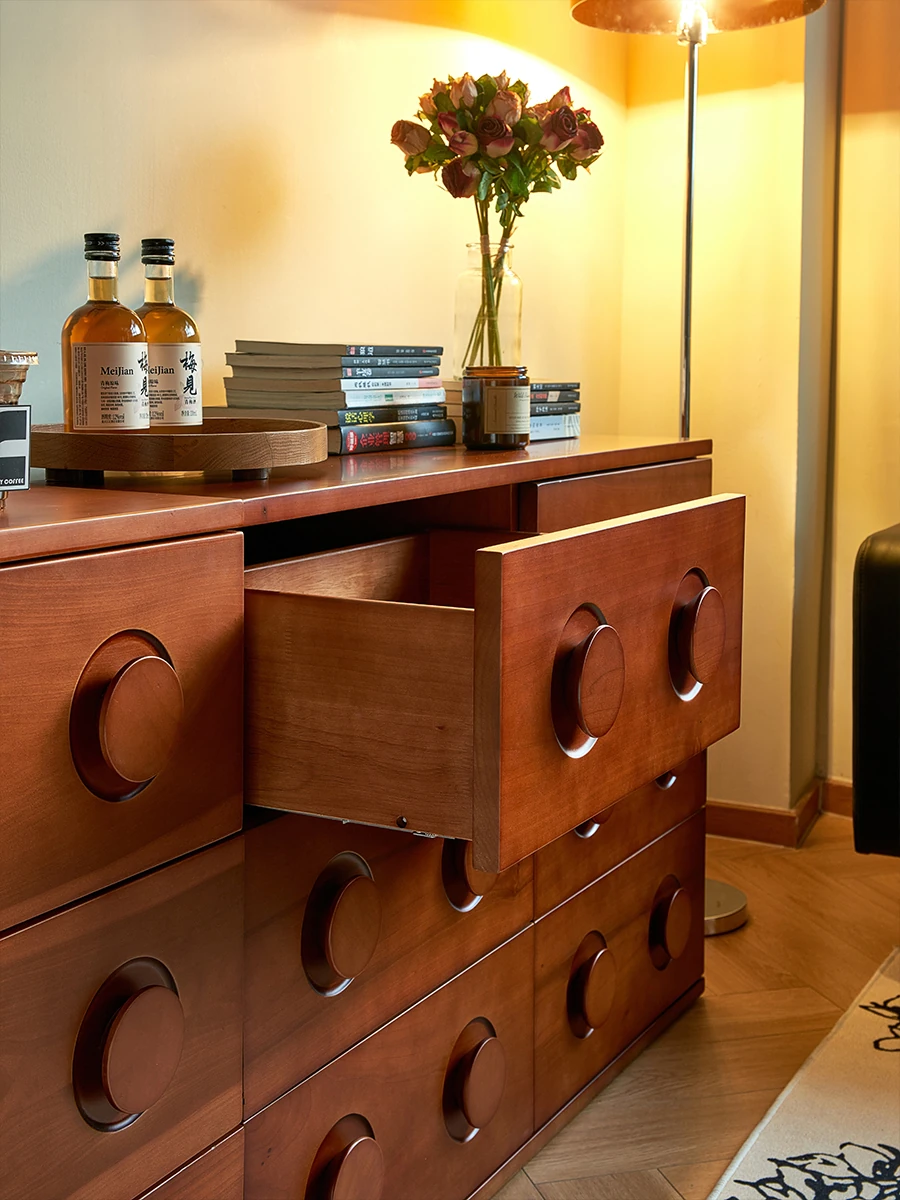 北欧風シンプルデザインの実木ベッドサイド収納キャビネット - 子供部屋に最適なチェリーウッド製、モダンでコンパクトな小型収納家具!インテリアをおしゃれに演出します。